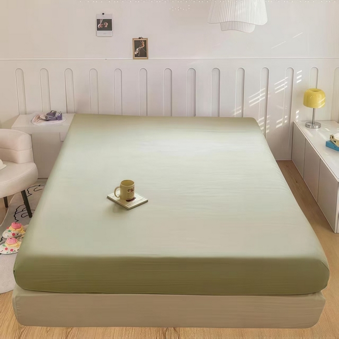 商品名称:麦瑞家纺 2025新款色织风细纱老粗布床笠 碧山(绿)