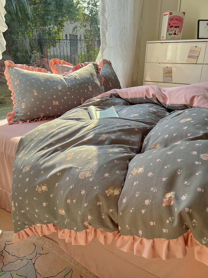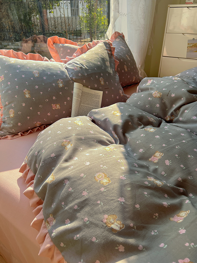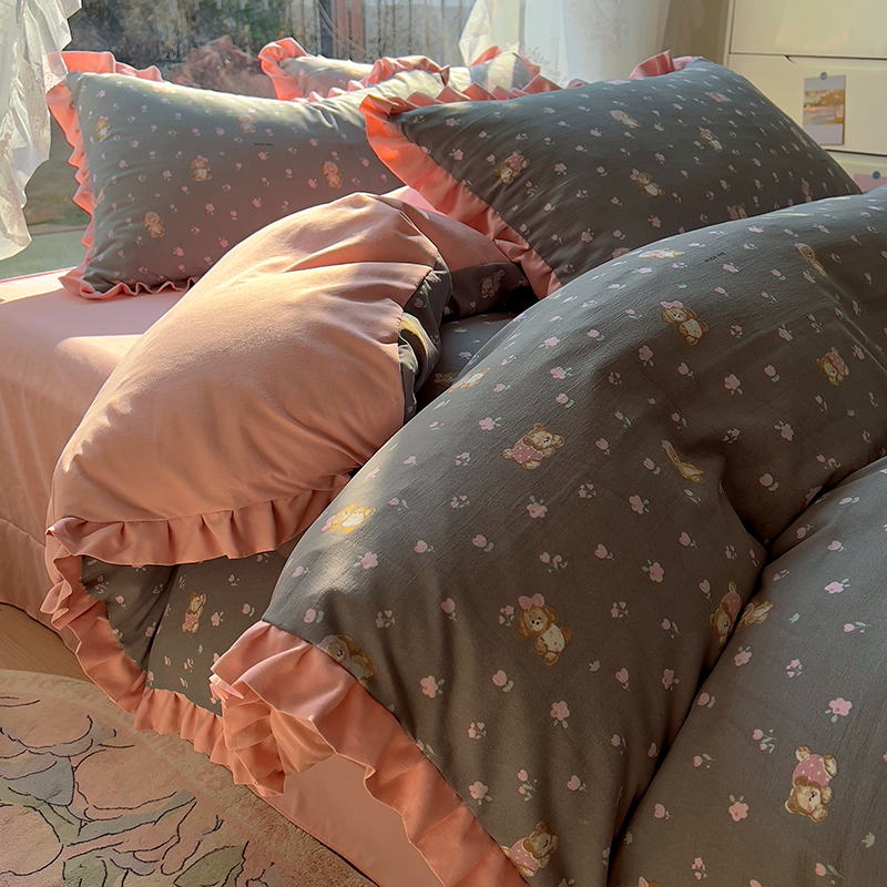 商品名称:欧尚 2025新款针织棉双层纱四件套 萌趣仔仔