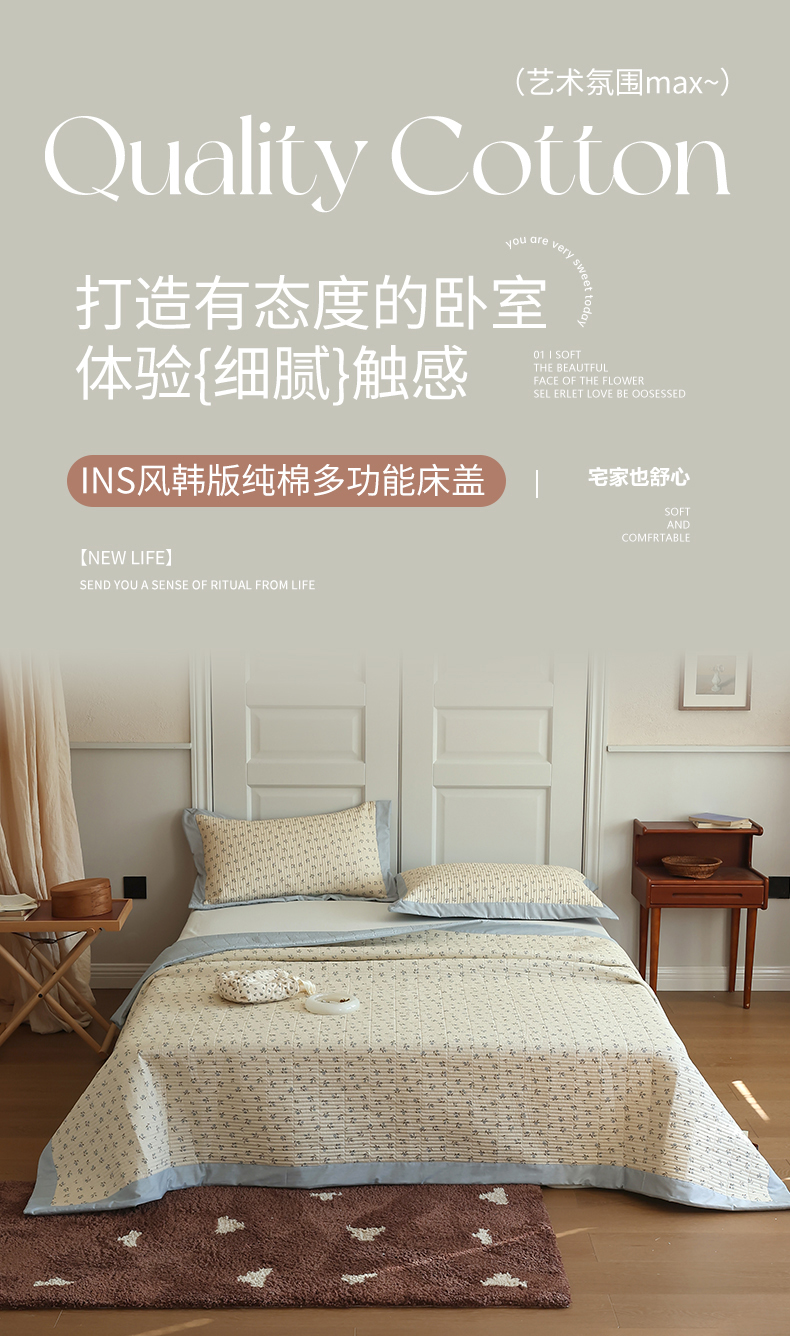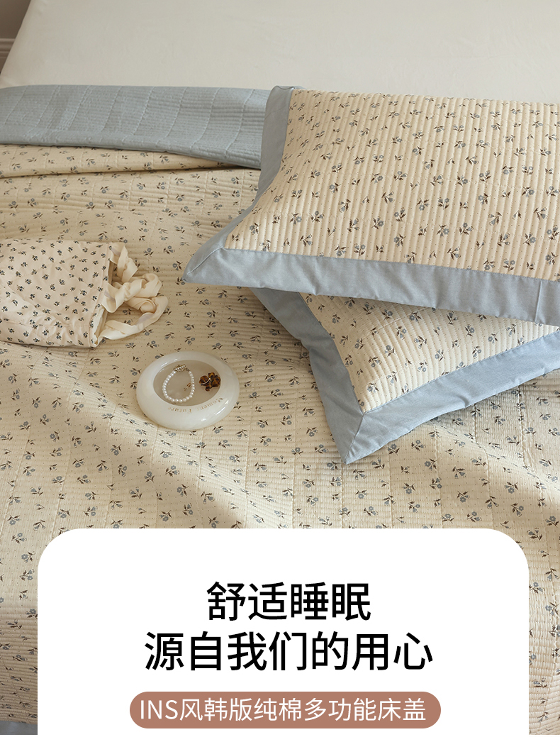 (总)富瑞阁 2025新款ins风韩版AB全棉纯棉多功能床盖夏被盖毯单品件套三件套,繁花,海洋之心,花开满满,锦觅,卡芙卡,浪漫生活,丽芙,莫言,南笙-兰,秋日暖阳,思忆绵绵,香香兔-兰