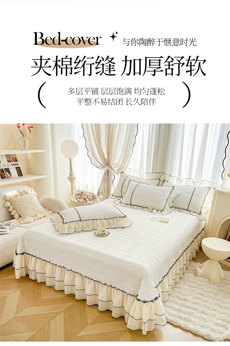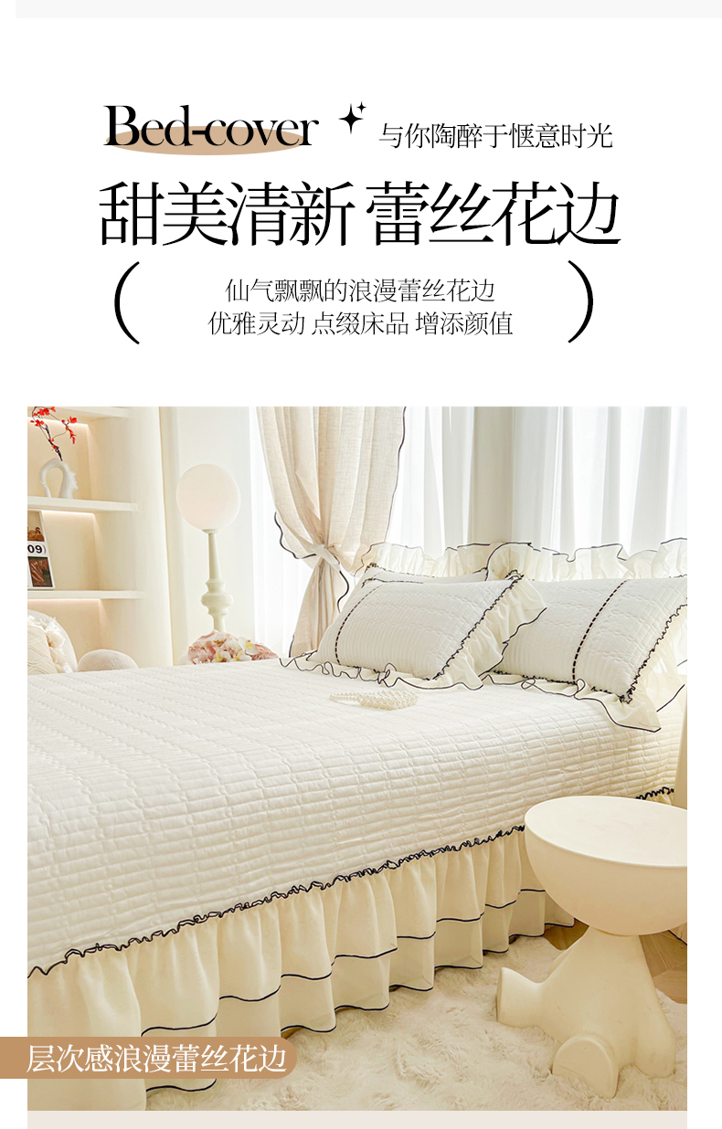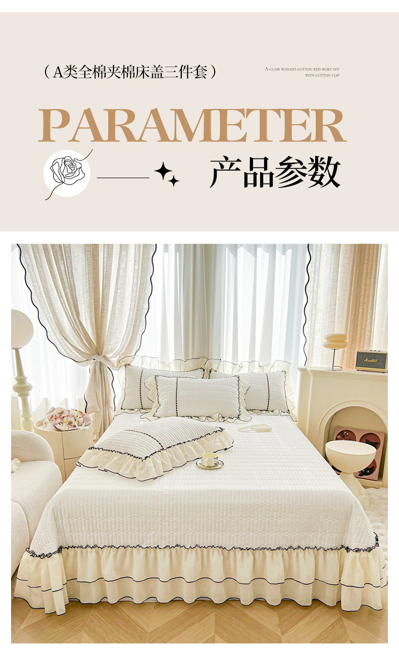鑫棉坊 2025年新款全棉床盖三件套-花影倾梦 花影倾梦-云朵白