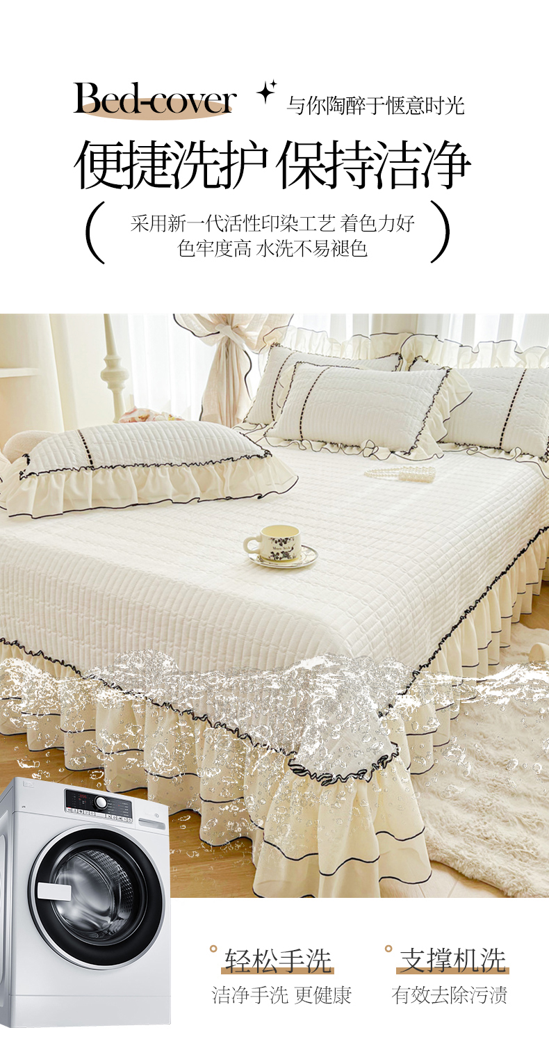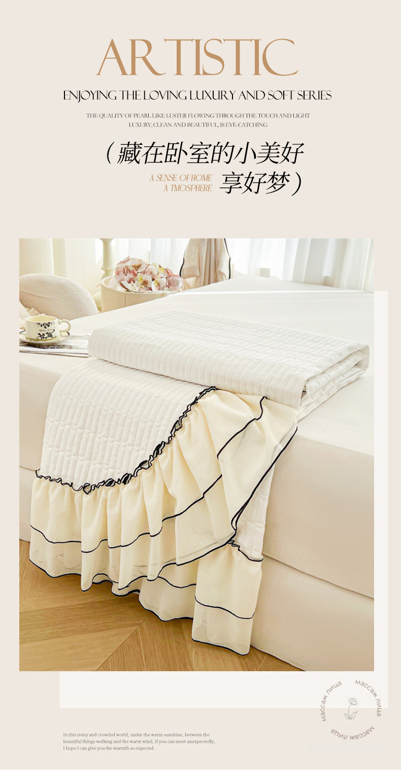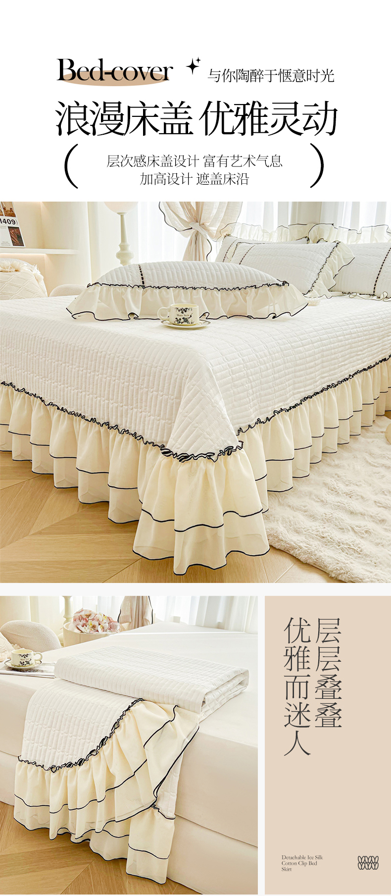 鑫棉坊 2025年新款全棉床盖三件套-花影倾梦 花影倾梦-云朵白