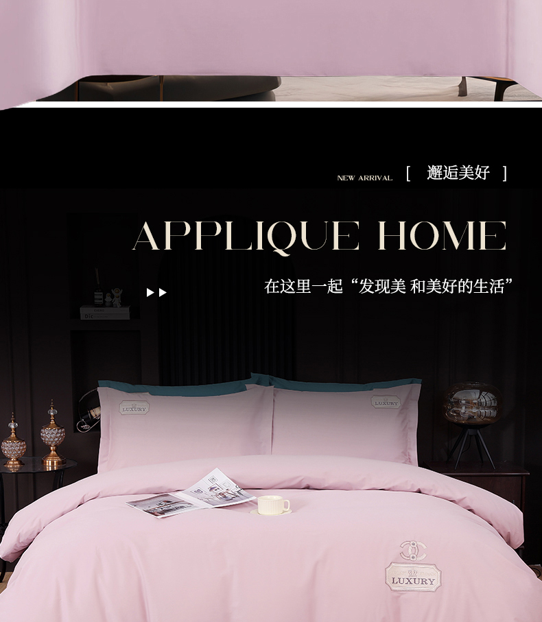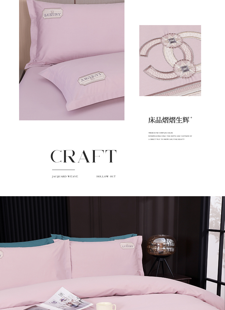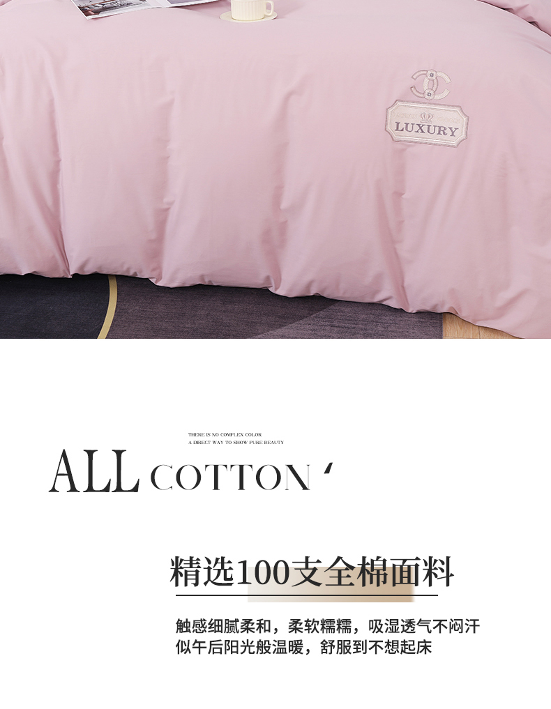商品名称:浩情国际婚庆供货中心 2026新品春夏四季款全棉纯棉高端绣花四件套-纽约风情 纽约风情-藕粉