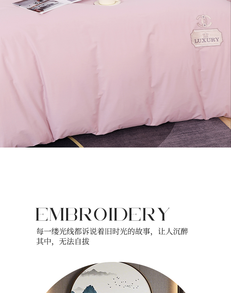 (总)浩情国际婚庆供货中心 2026新品-100支全棉长绒棉磨毛高端刺绣系列四件套,轻曼-豆沙,轻曼-湖兰,轻曼-米驼,轻曼-浅绿,轻曼-浅玉,轻曼-银灰,山水情-豆沙,山水情-粉玉,山水情-湖兰,山水情-米驼,山水情-浅灰,山水情-水兰