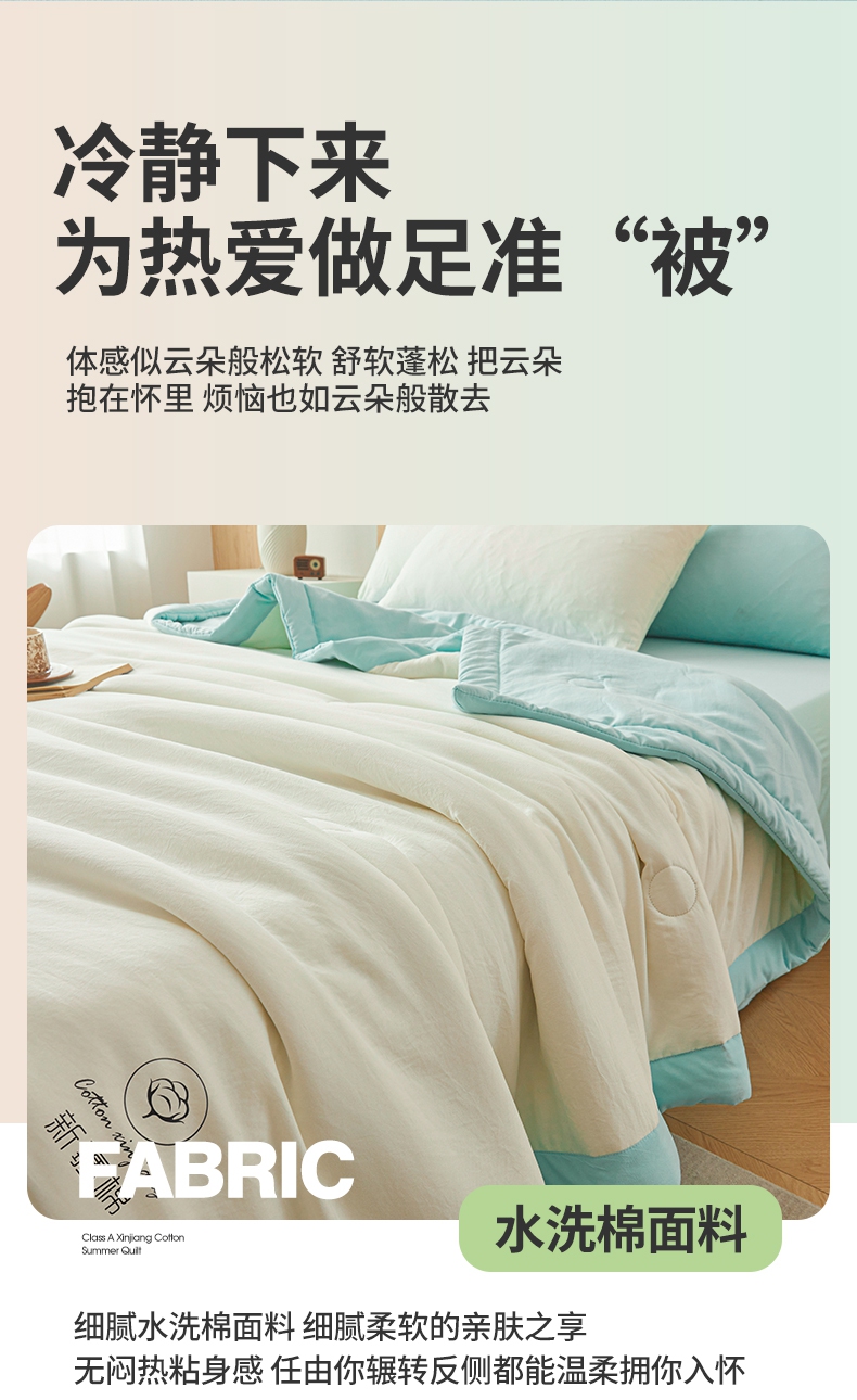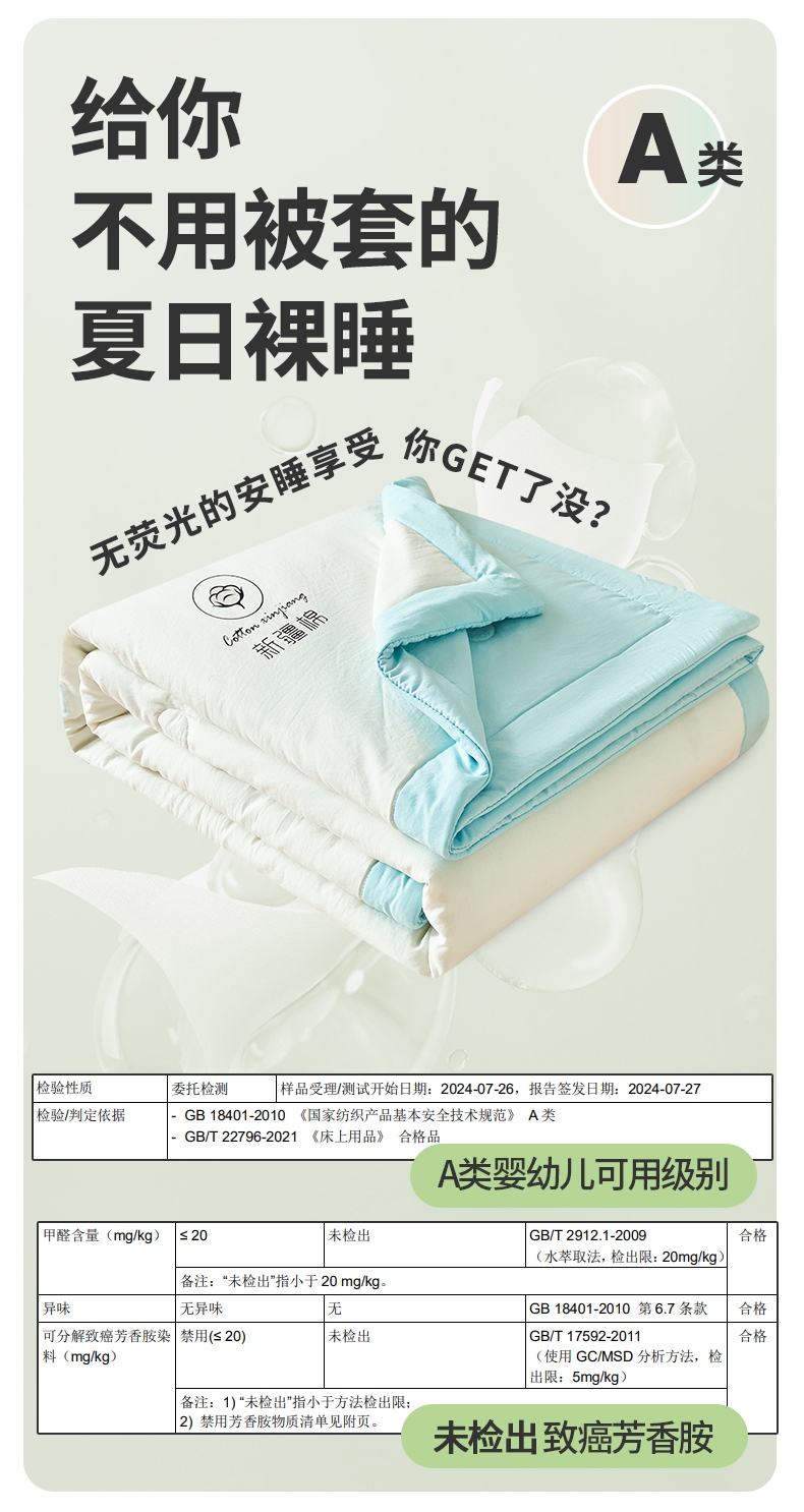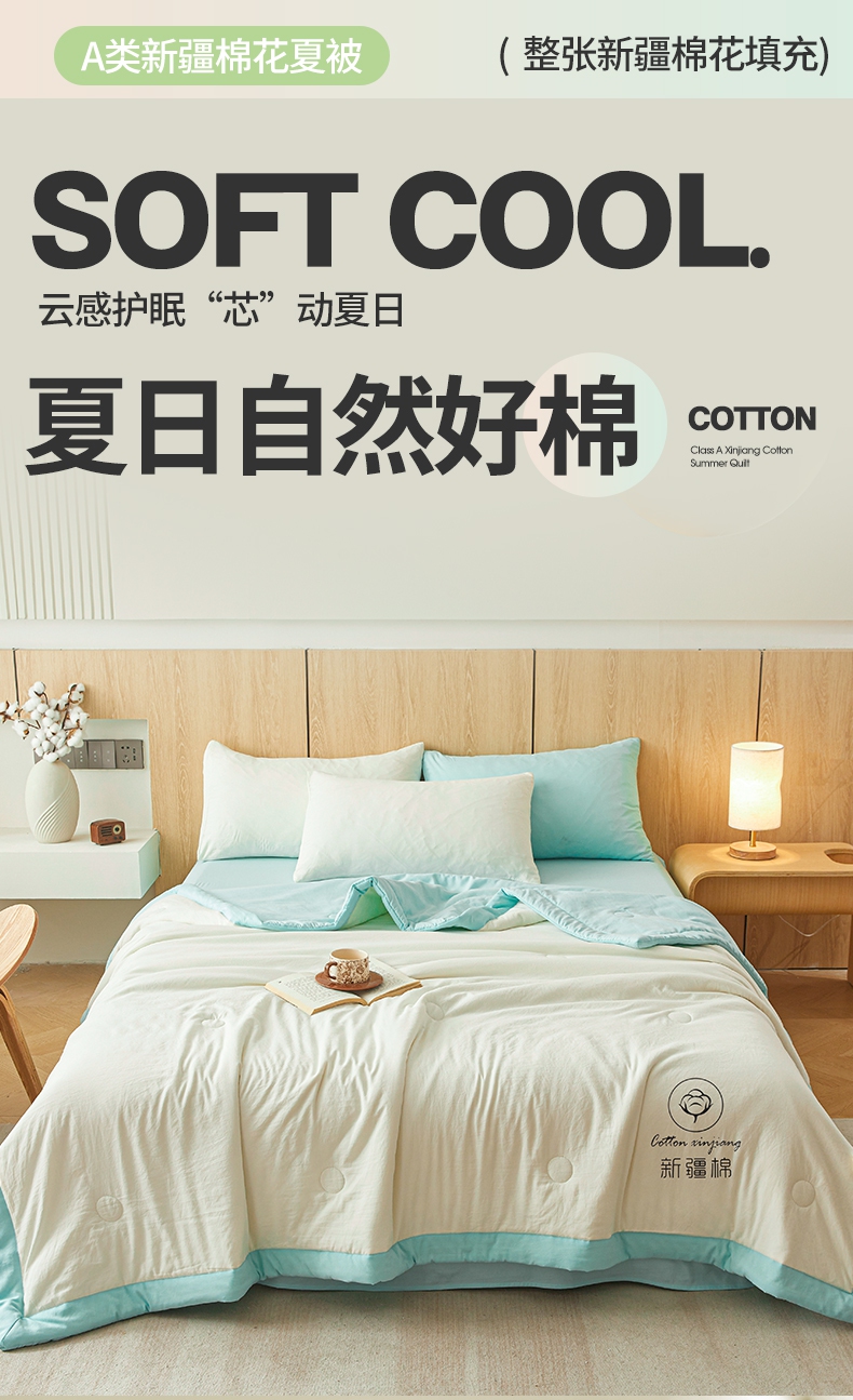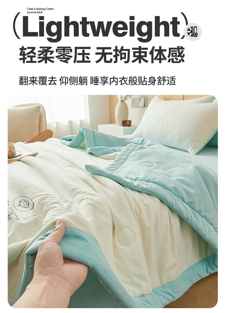 商品名称:晓时候 2025新款无印风水洗棉新疆棉花被夏被夏凉被空调被子 素夏-奶白绿