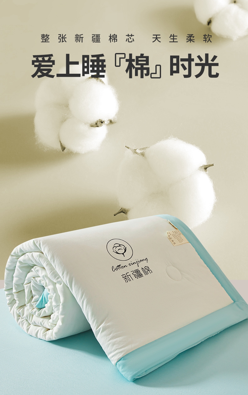 (总)晓时候 2025新款鱼鳞网棉胎新疆棉花被棉絮被芯加厚冬被春秋被芯学生床垫被子,新疆棉胎床垫-学生款