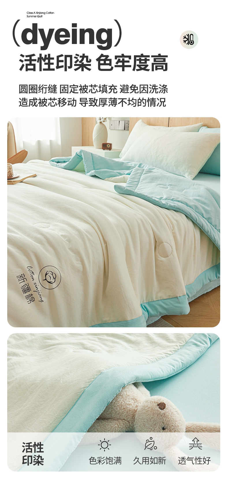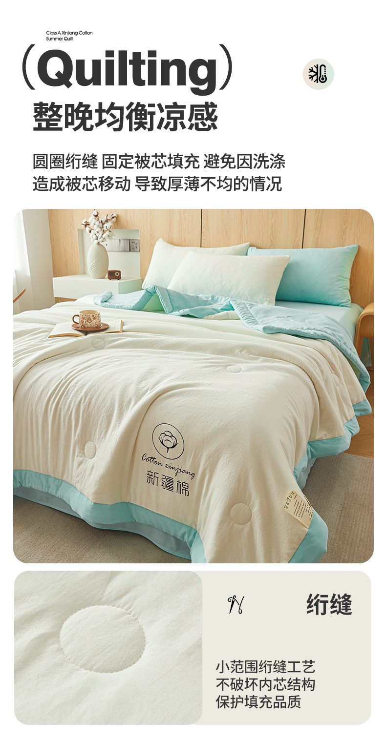 晓时候 2025新款无印风水洗棉新疆棉花被夏被夏凉被空调被子 素夏-奶白绿
