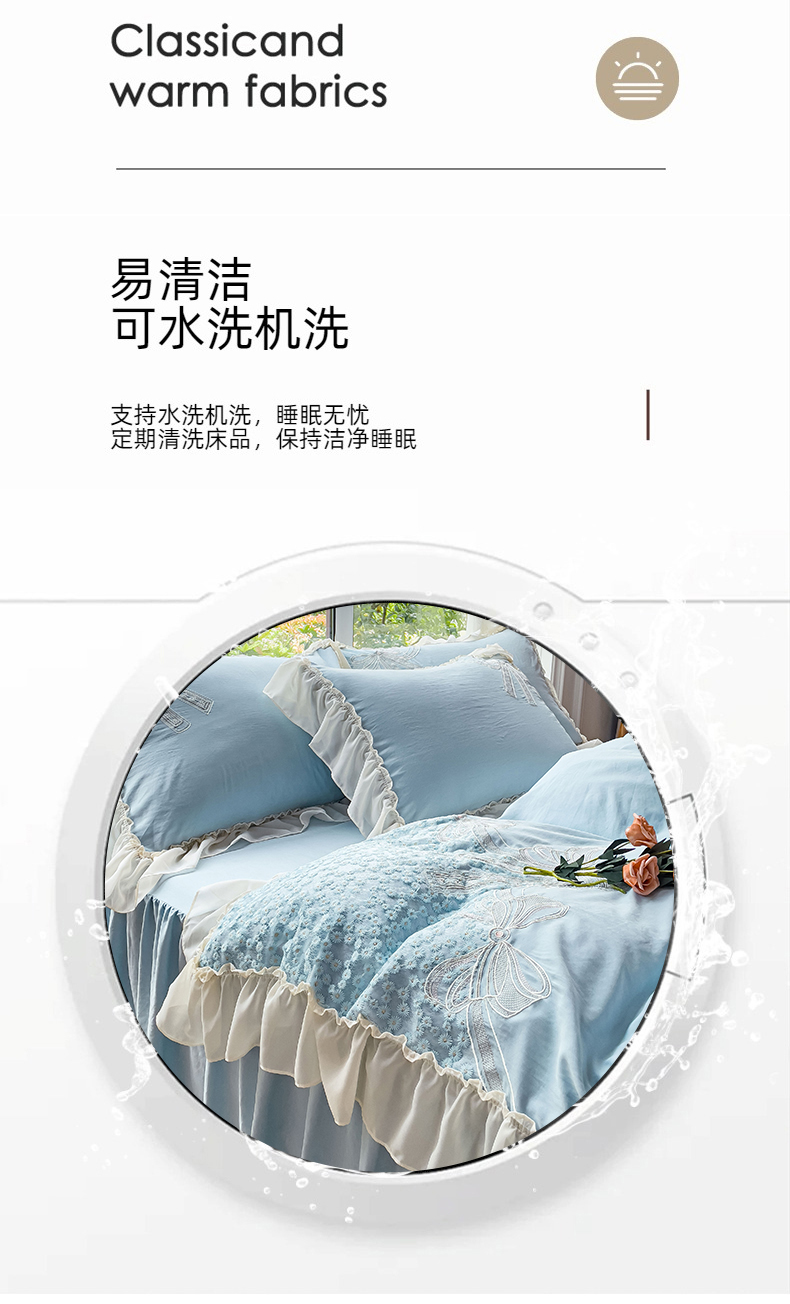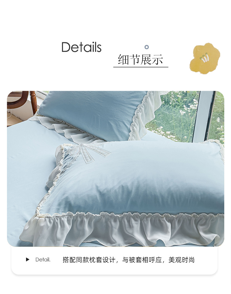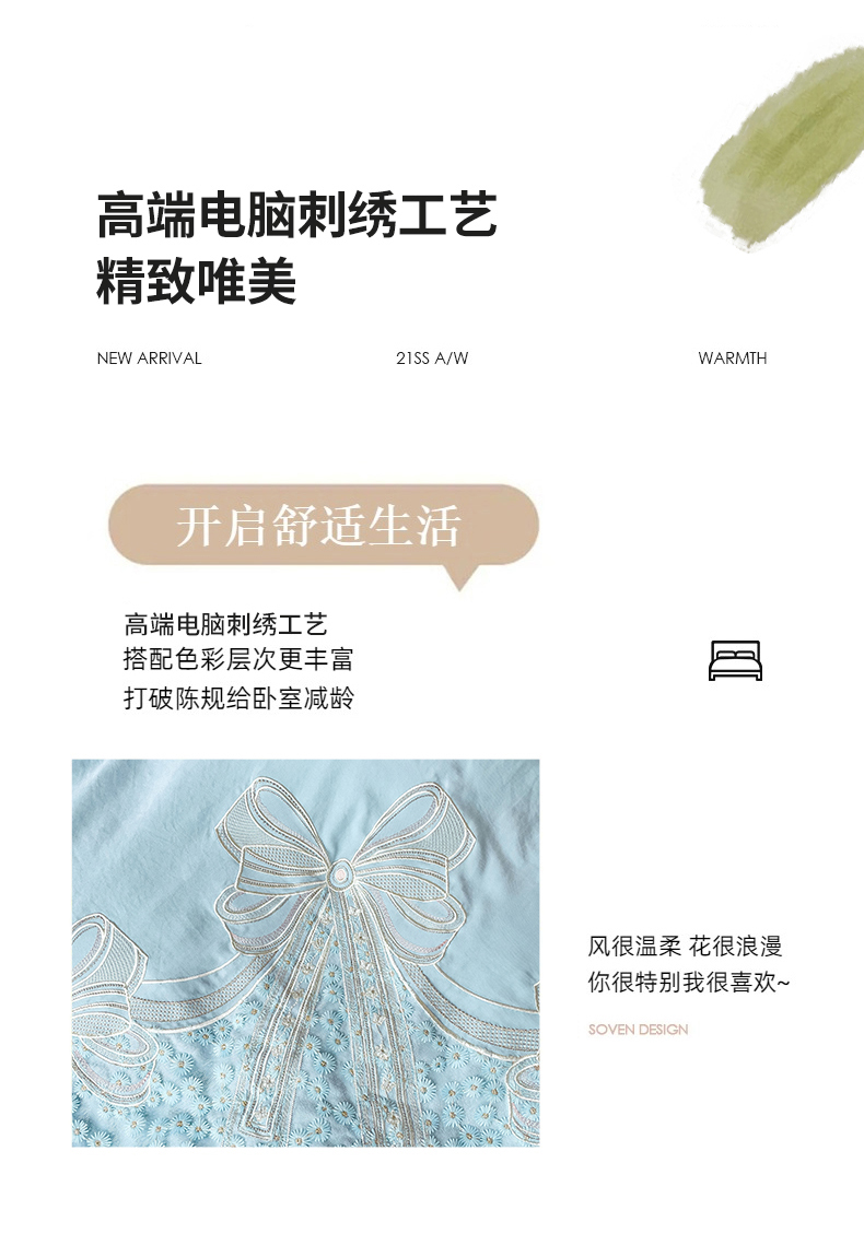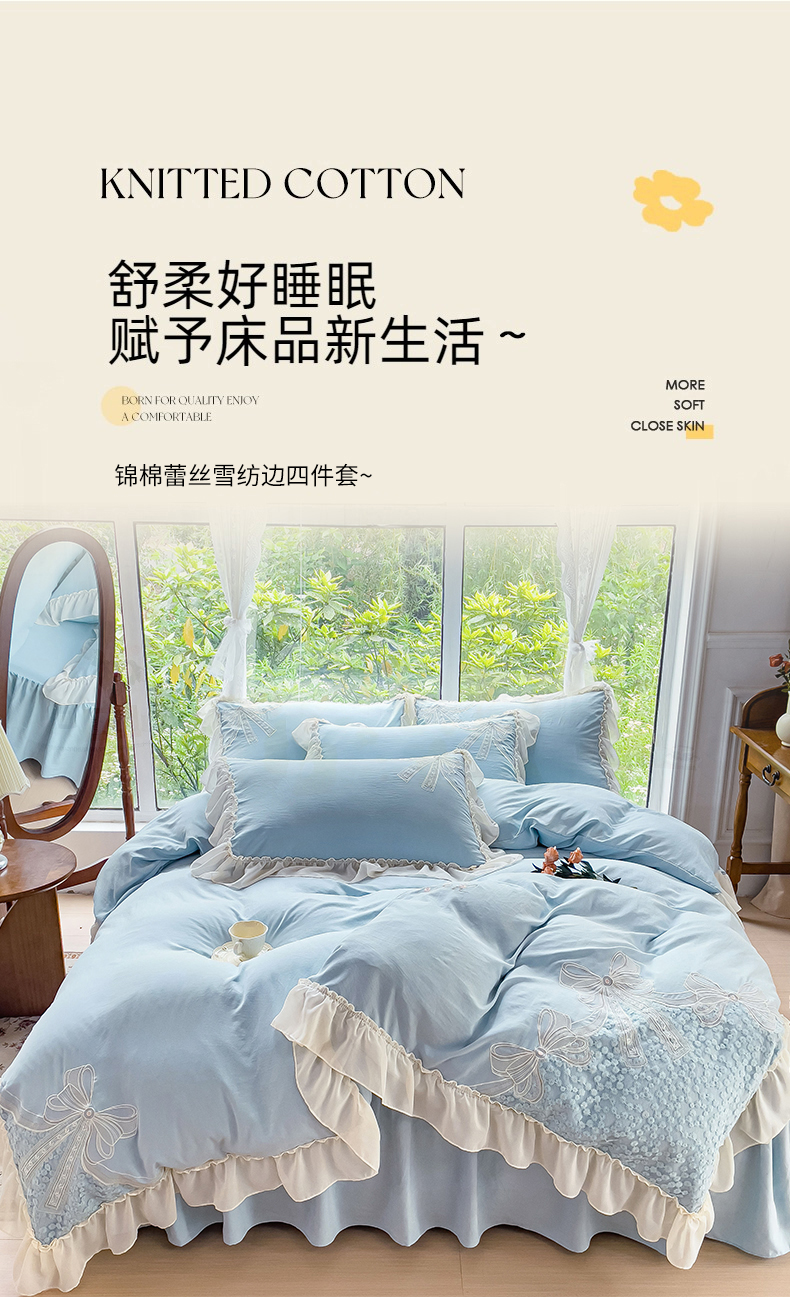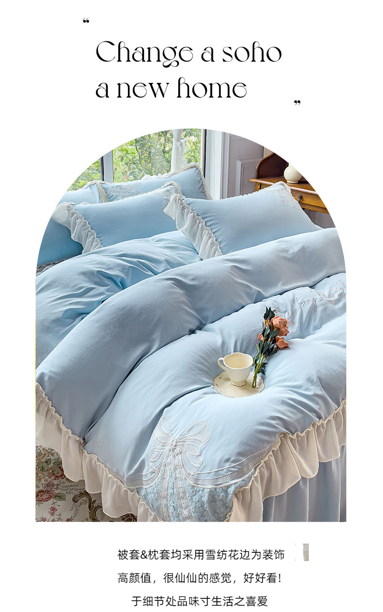 商品名称:睡美人 2025韩版全锦棉刺绣公主风蕾丝床裙款四件套-蝶恋花 蝶恋花-青春兰