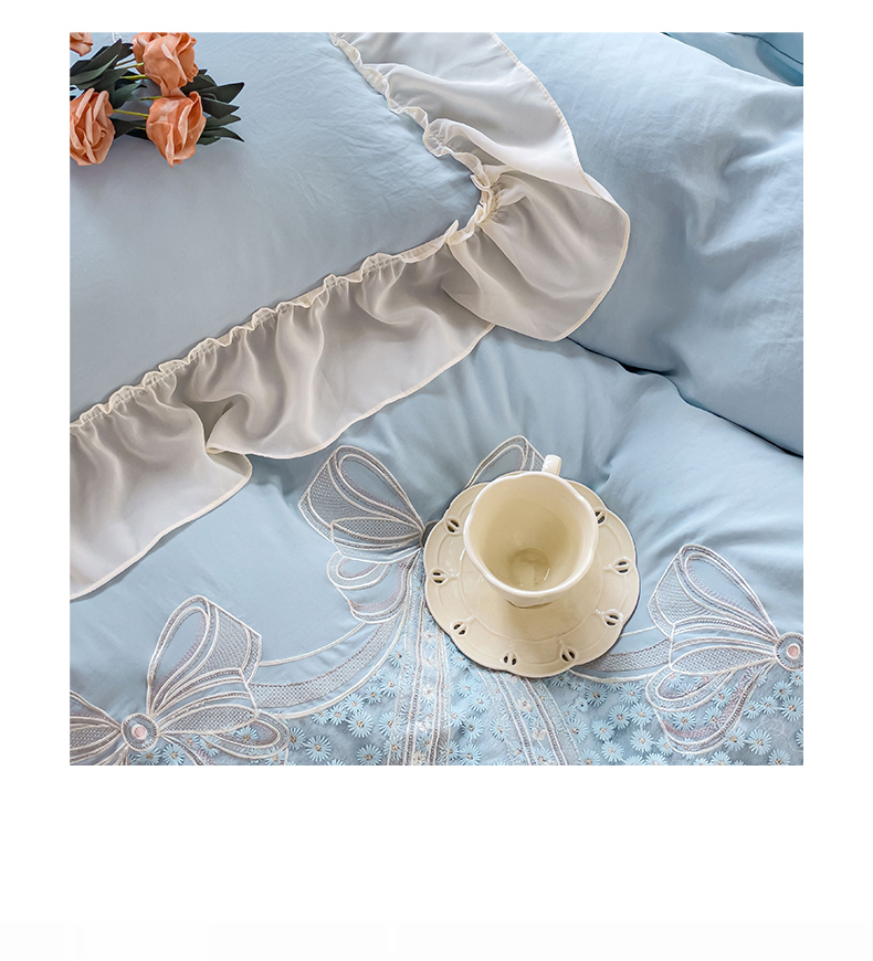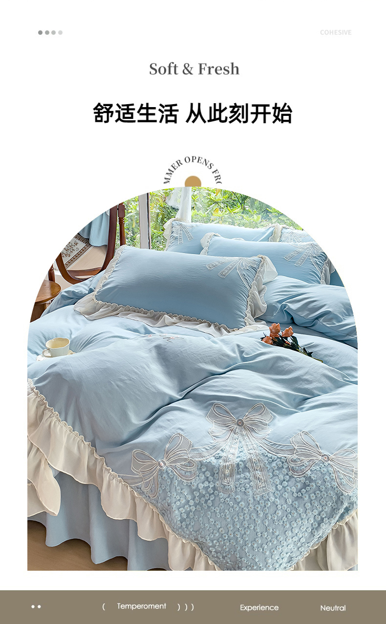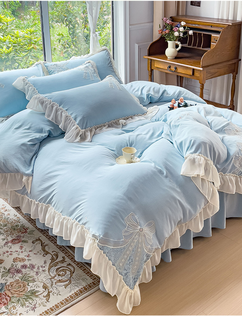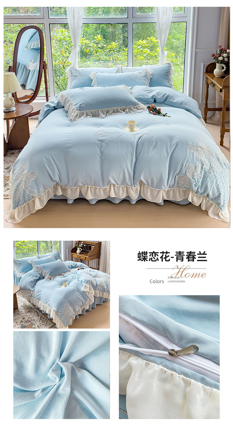 睡美人 2025韩版全锦棉刺绣公主风蕾丝床裙款四件套-蝶恋花 蝶恋花-青春兰