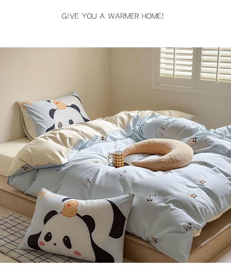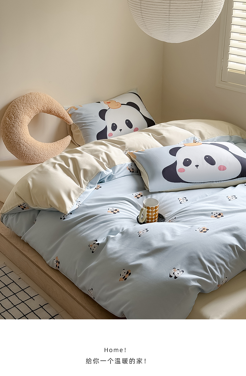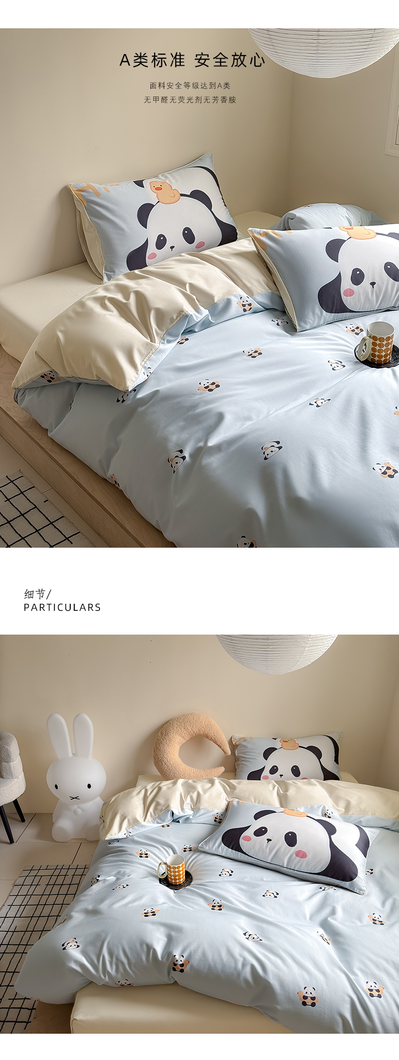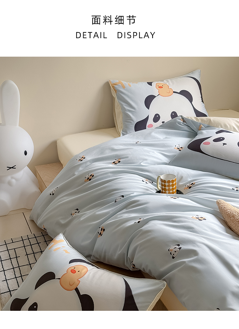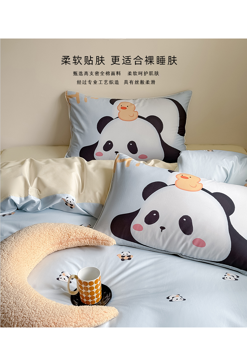 商品名称:Mr.pig猪先生水洗棉 2025新款50贡缎长绒棉数码印花嵌绳四件套 熊猫-乐乐