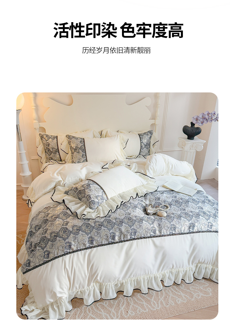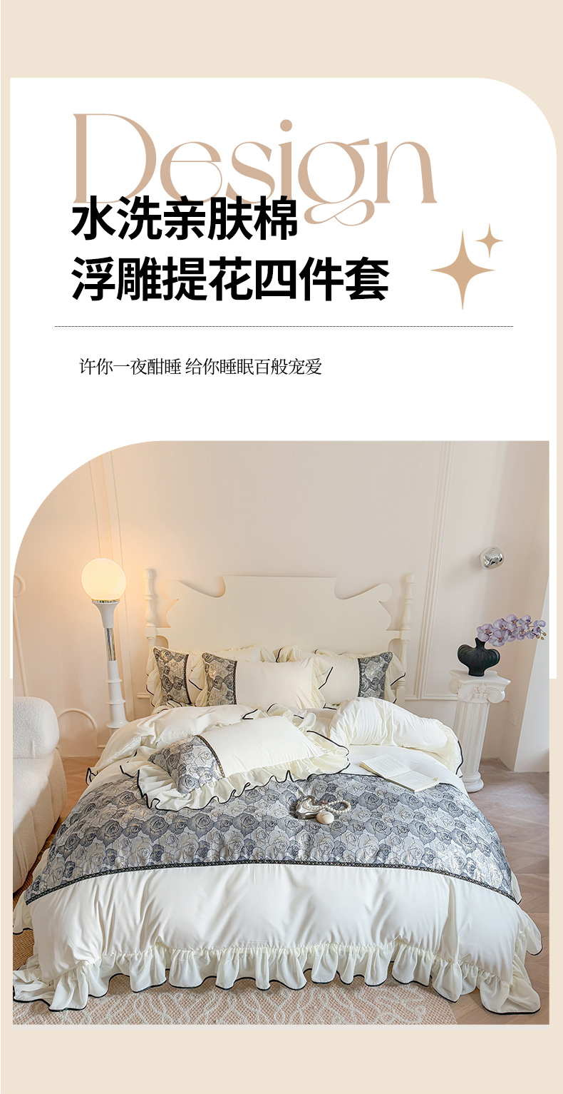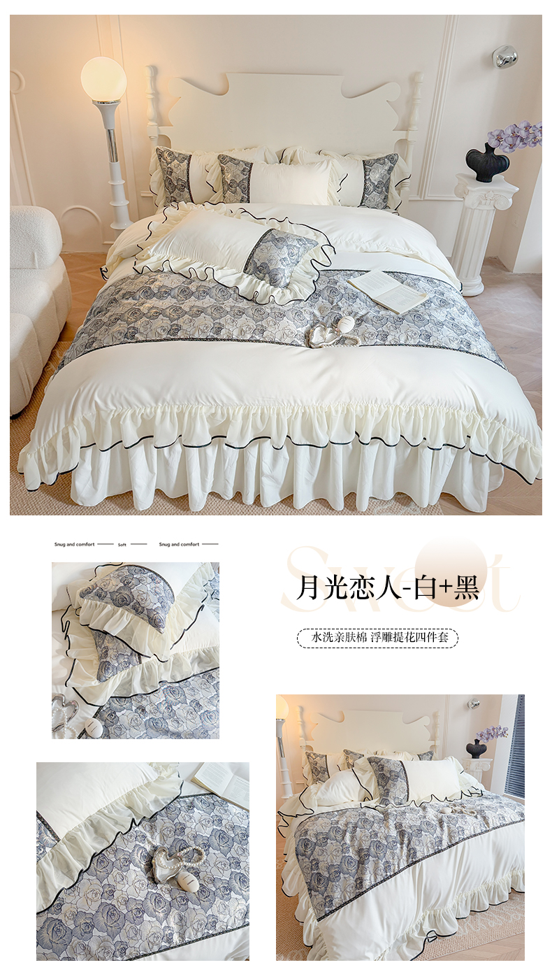 当前位置: 91家纺网 > 商品网购 > 床品套件 > 四件套 > 全棉普通四件套 > 富盛 2025新款水洗亲肤棉浮雕提花公主风四件套 月光恋人-白+黑