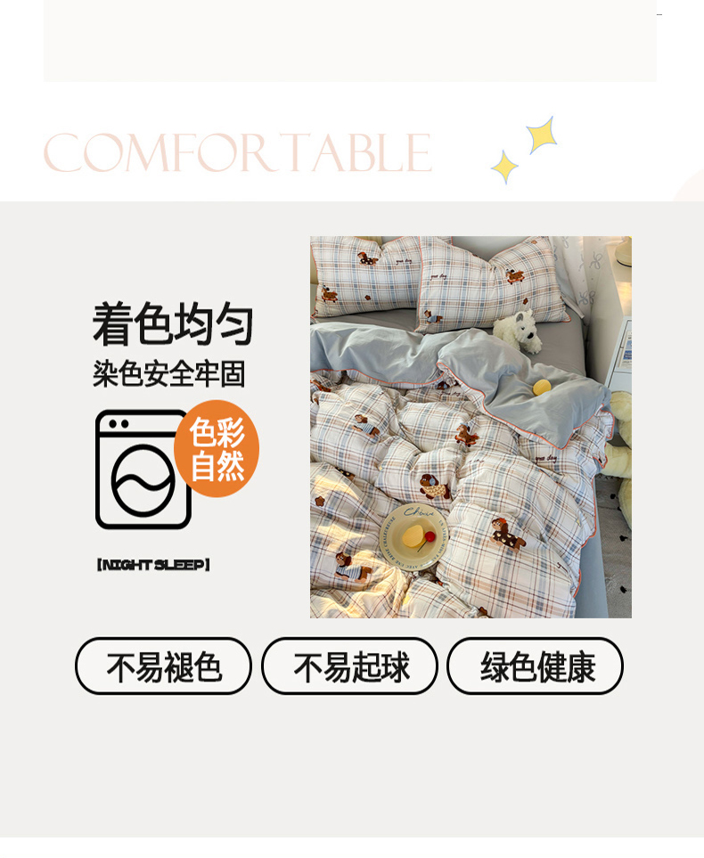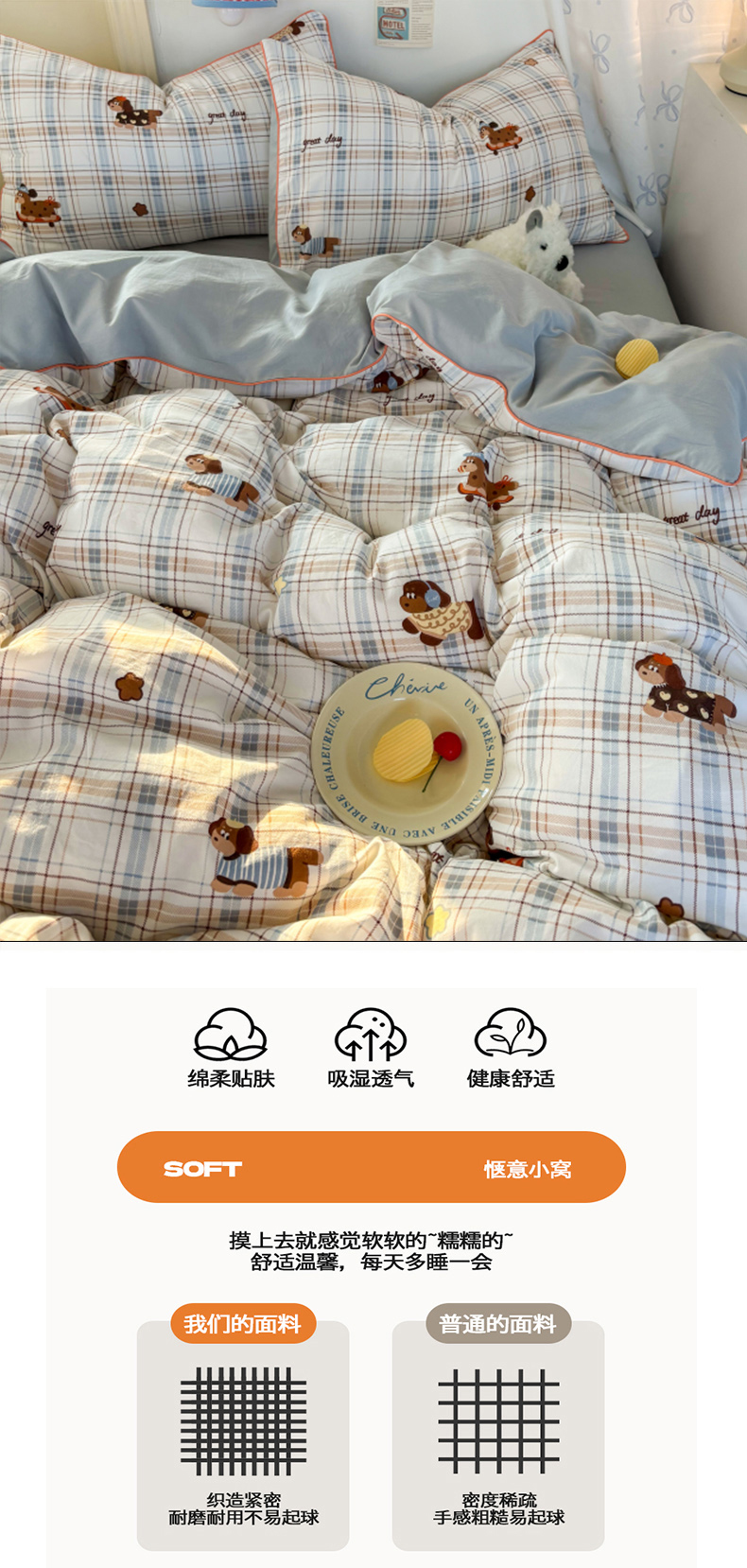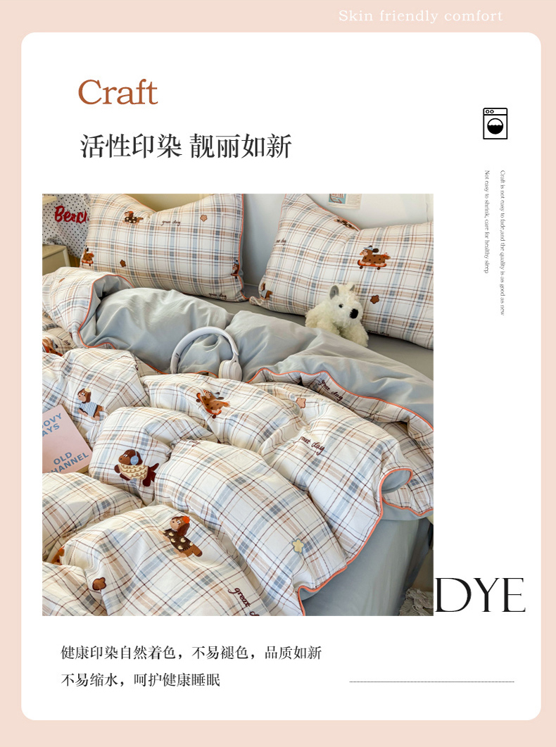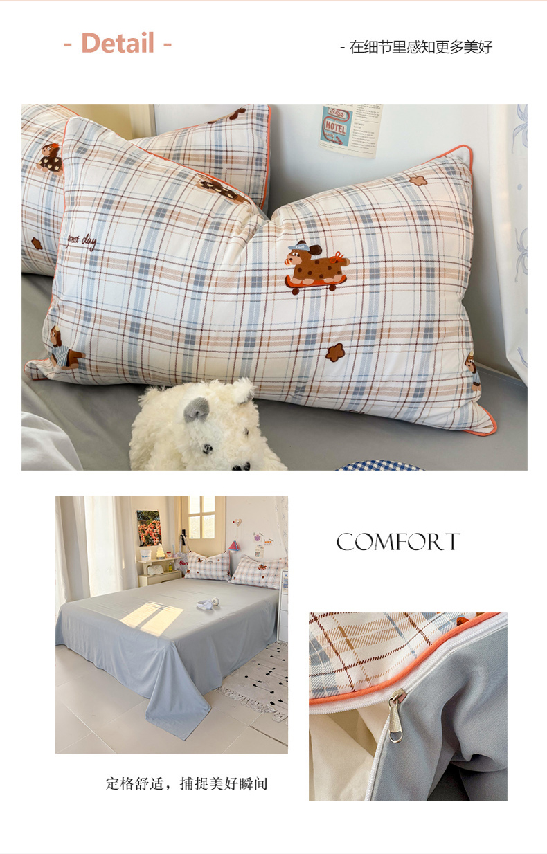 商品名称:潮邦创意家居 2025新款云柔棉立体嵌绳款小清新四件套 蓝格萌趣