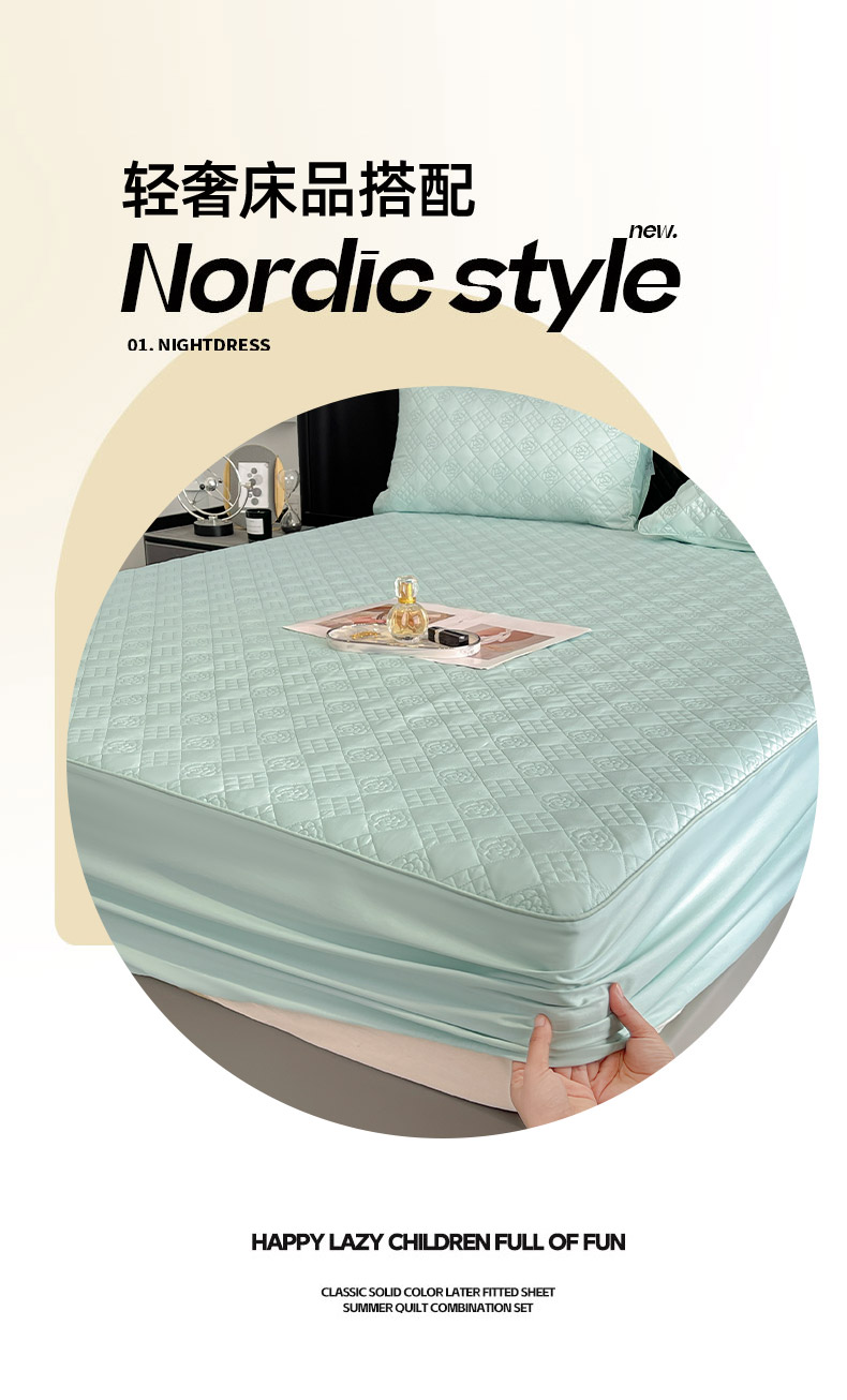 商品名称:2025新款A类母婴级长绒棉夹棉床笠三件套纯棉全棉加厚席梦思床罩床套四季款保护罩 茶绿