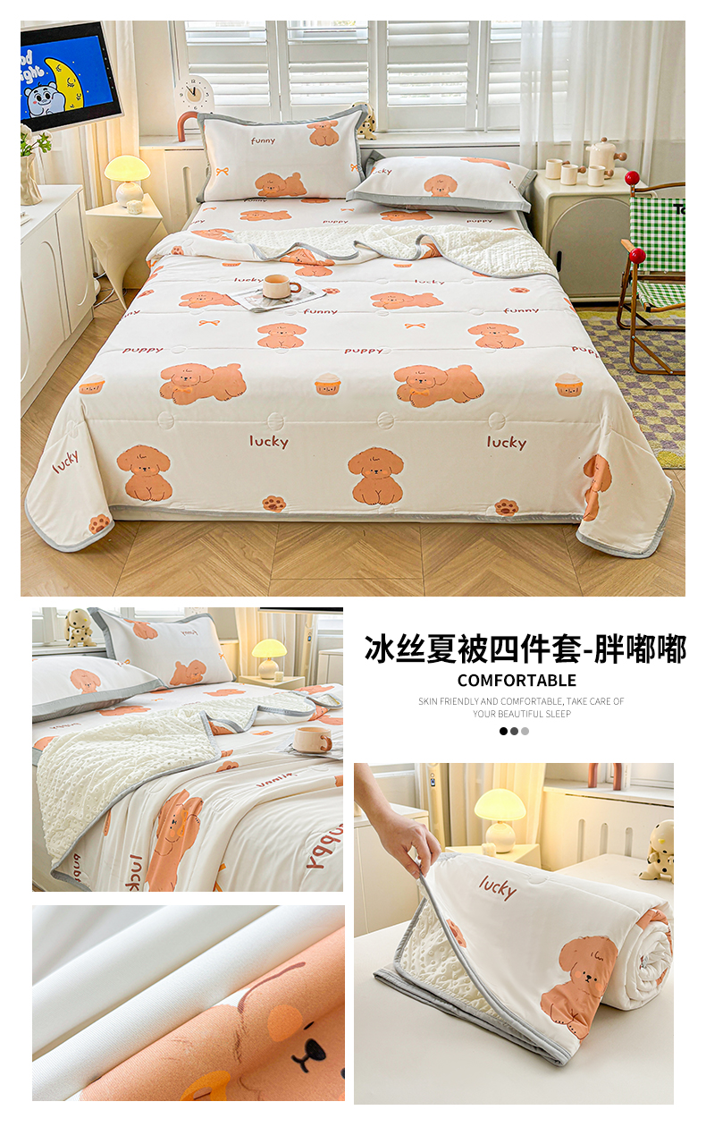 • 91家纺网 家纺一手货源 找家纺 雯豆2025春夏新款凉感丝夏被空调被子印花A类卡通小清新夏被 冰丝夏被四件套-胖嘟嘟