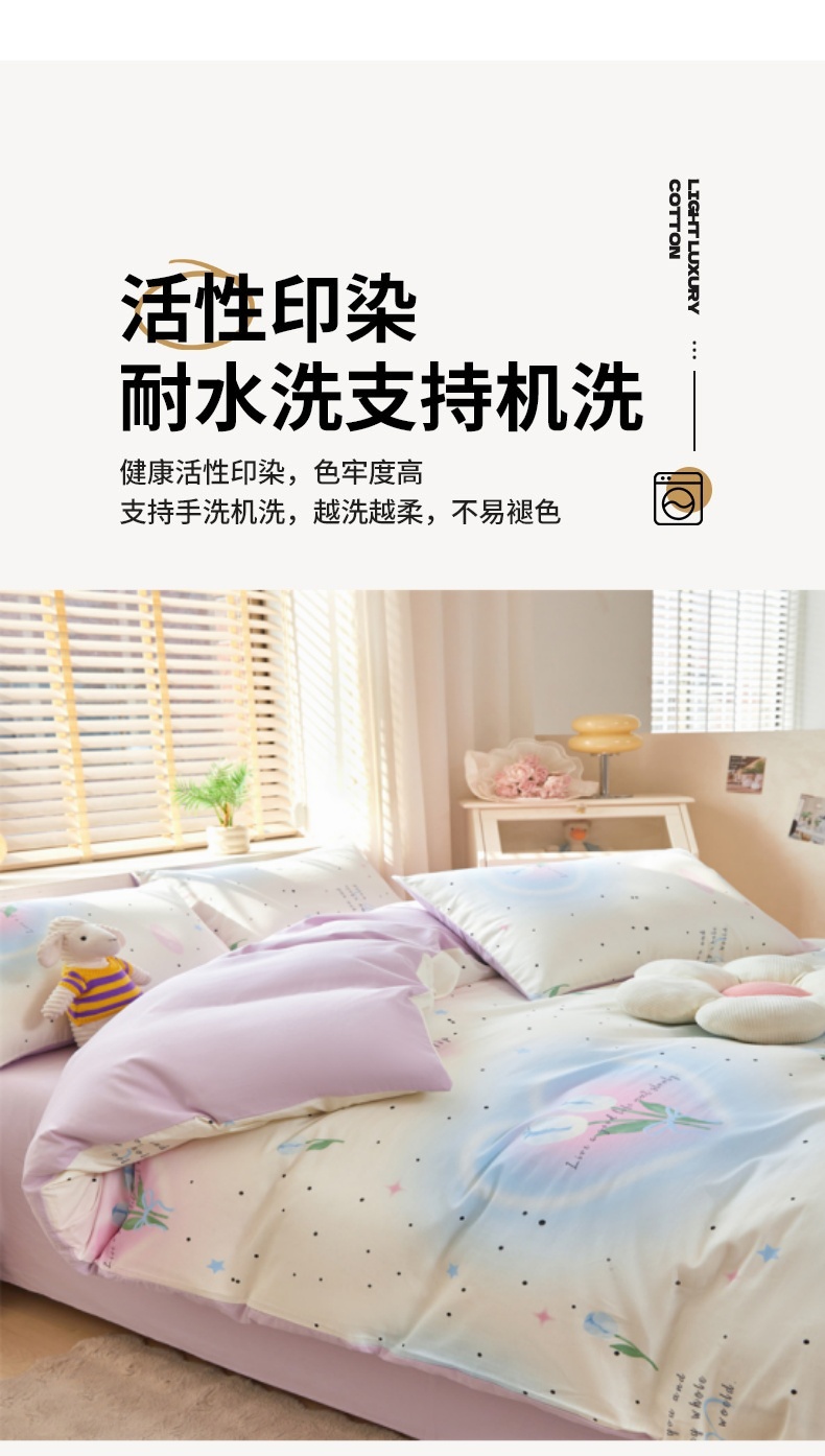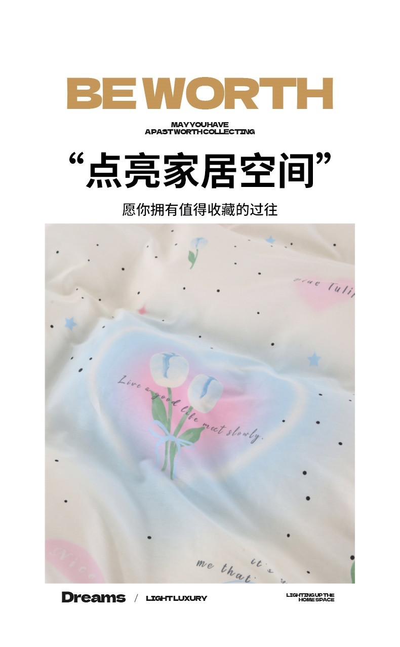 商品名称:梦舒羽2025新款全棉小清新印花加厚宿舍床单床裙款四件套 盛夏之姿-全棉