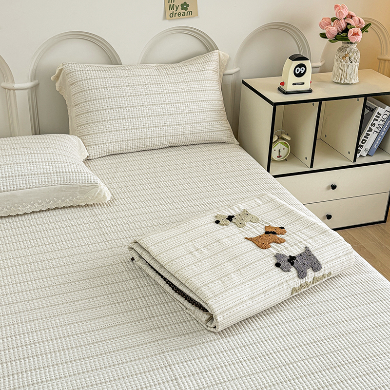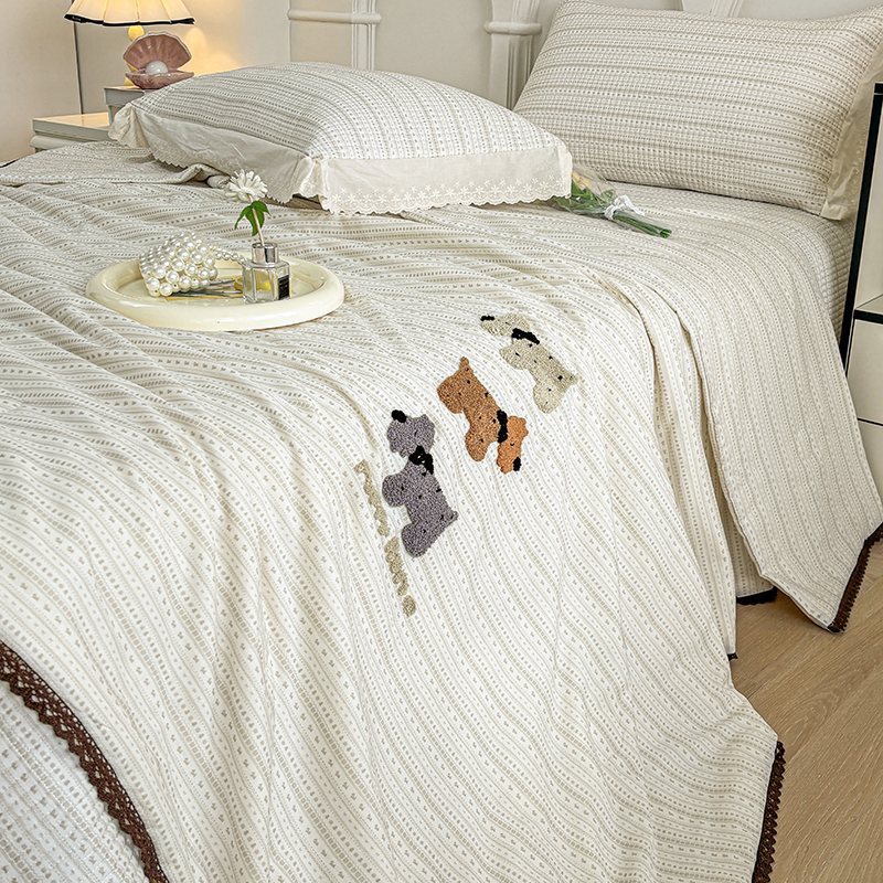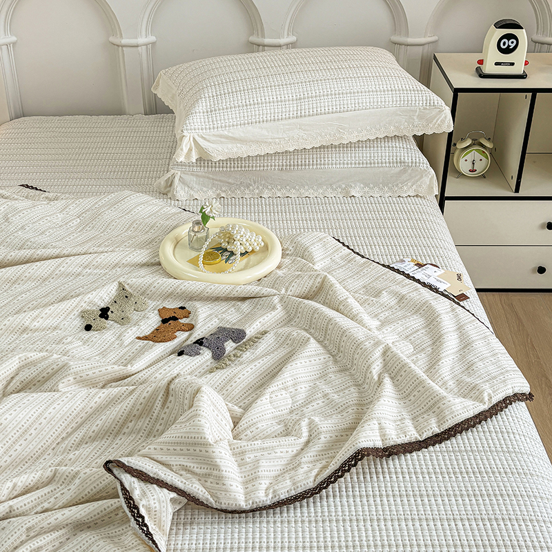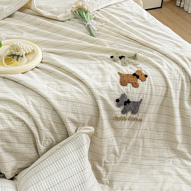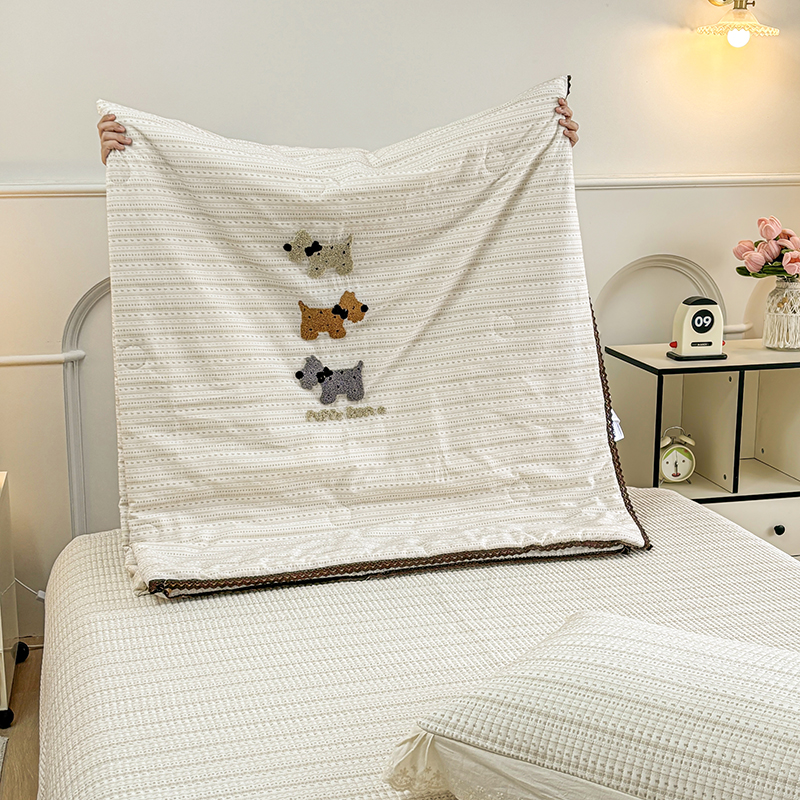 有货2025新款云纱棉毛巾绣夏被+床盖三件套 修狗
