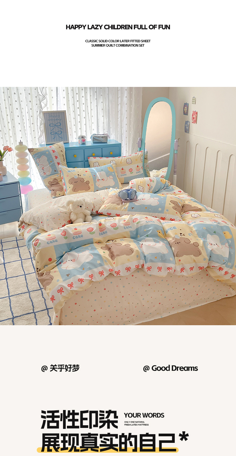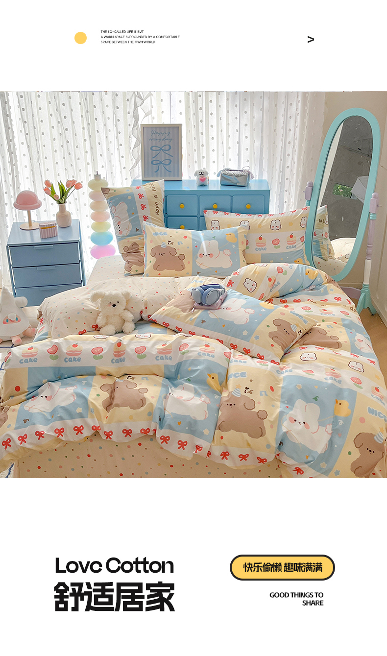 (总)寻米 2025新款全棉纯棉印花学生季四件套,爱你熊,焦糖布丁,柏林小镇,布鲁克林,春日暖阳-粉,春日暖阳-兰,花漾,花园小狗,花园小兔,恐龙乐园,快乐熊仔,松饼小喵,甜豆小泡芙,小狗店长,小狗没烦恼-卡其色,小狗没烦恼-蓝,小熊的一天-咖色,小熊的一天-奶油,小熊软糖,星辰,樱桃小狗,芋泥啵啵,云朵小熊,紫罗兰,组合图仅做展示