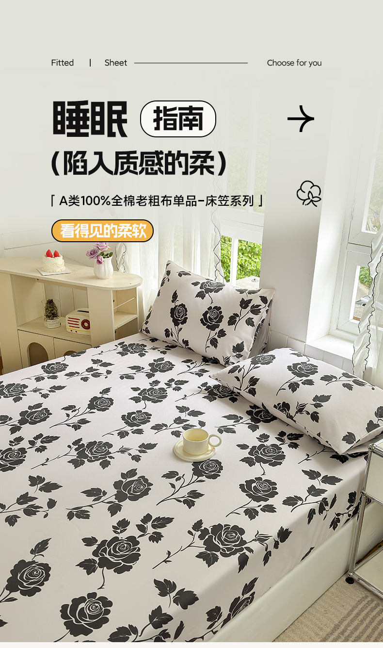 莱登卡奴 新款A类100%全棉老粗布单品系列 玫瑰情缘