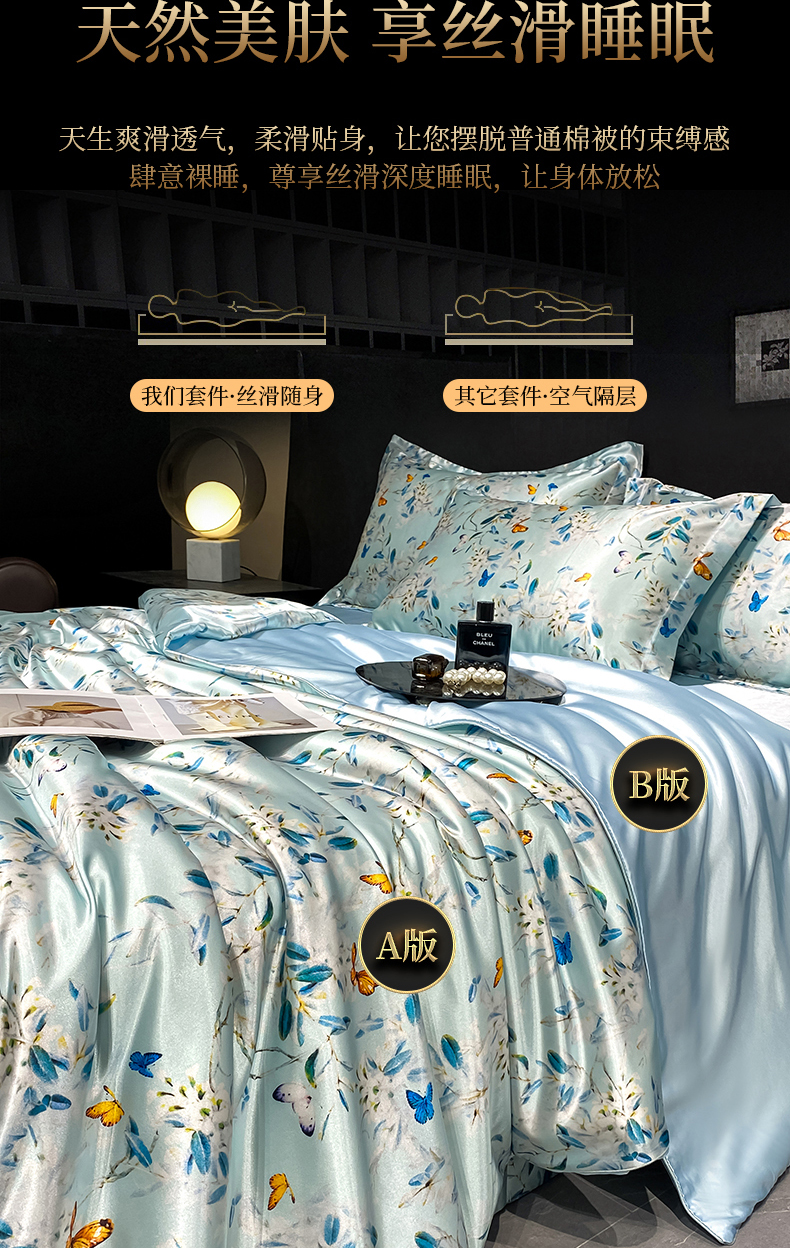 黄鹂鸟 2025新款高端轻奢丝滑裸睡丝绸数码印花水洗真丝天丝四件套系列 -风格四 缤纷蝶梦