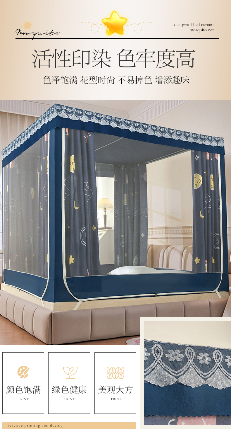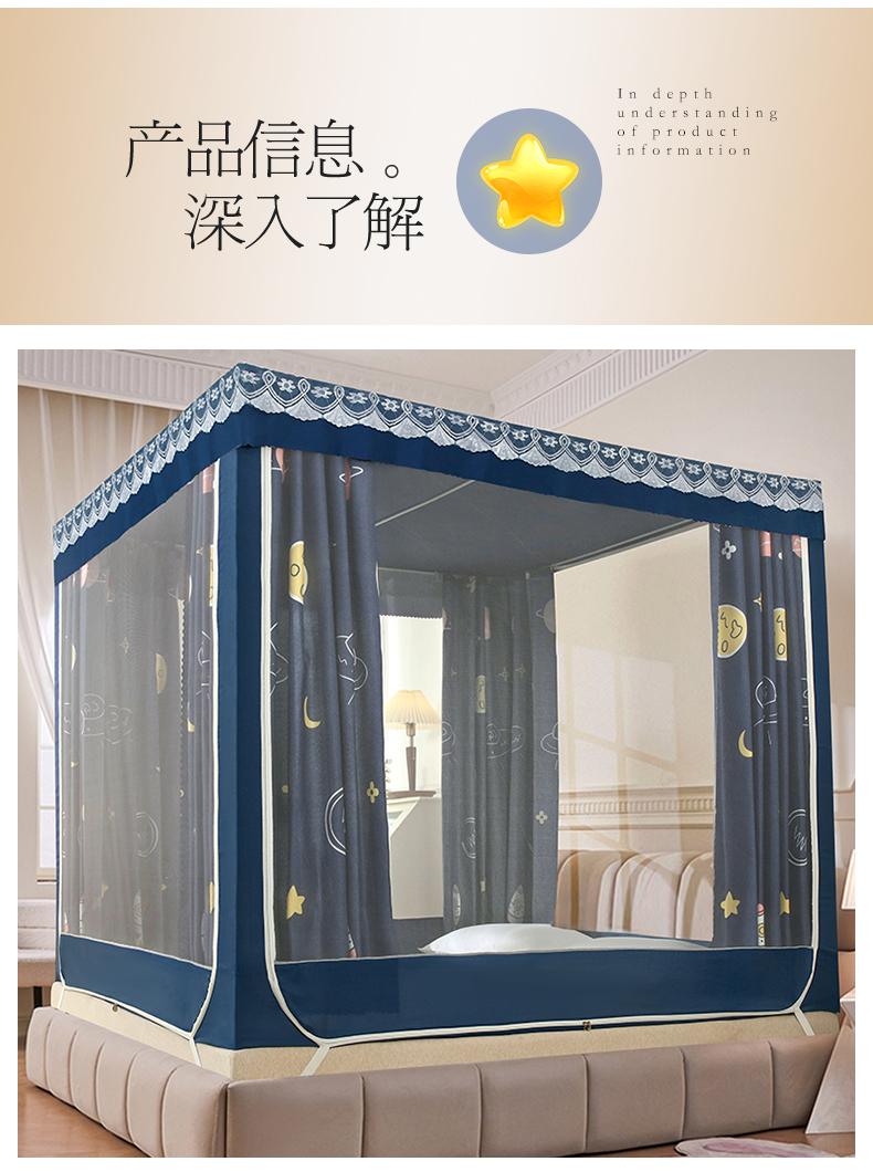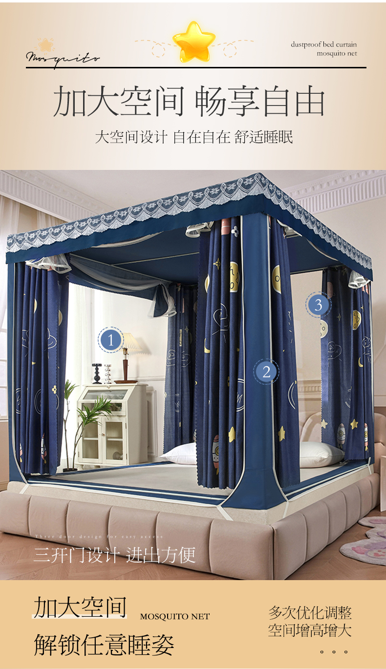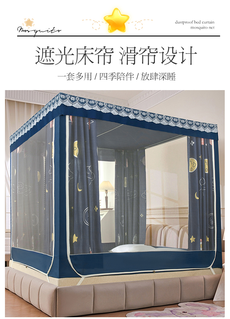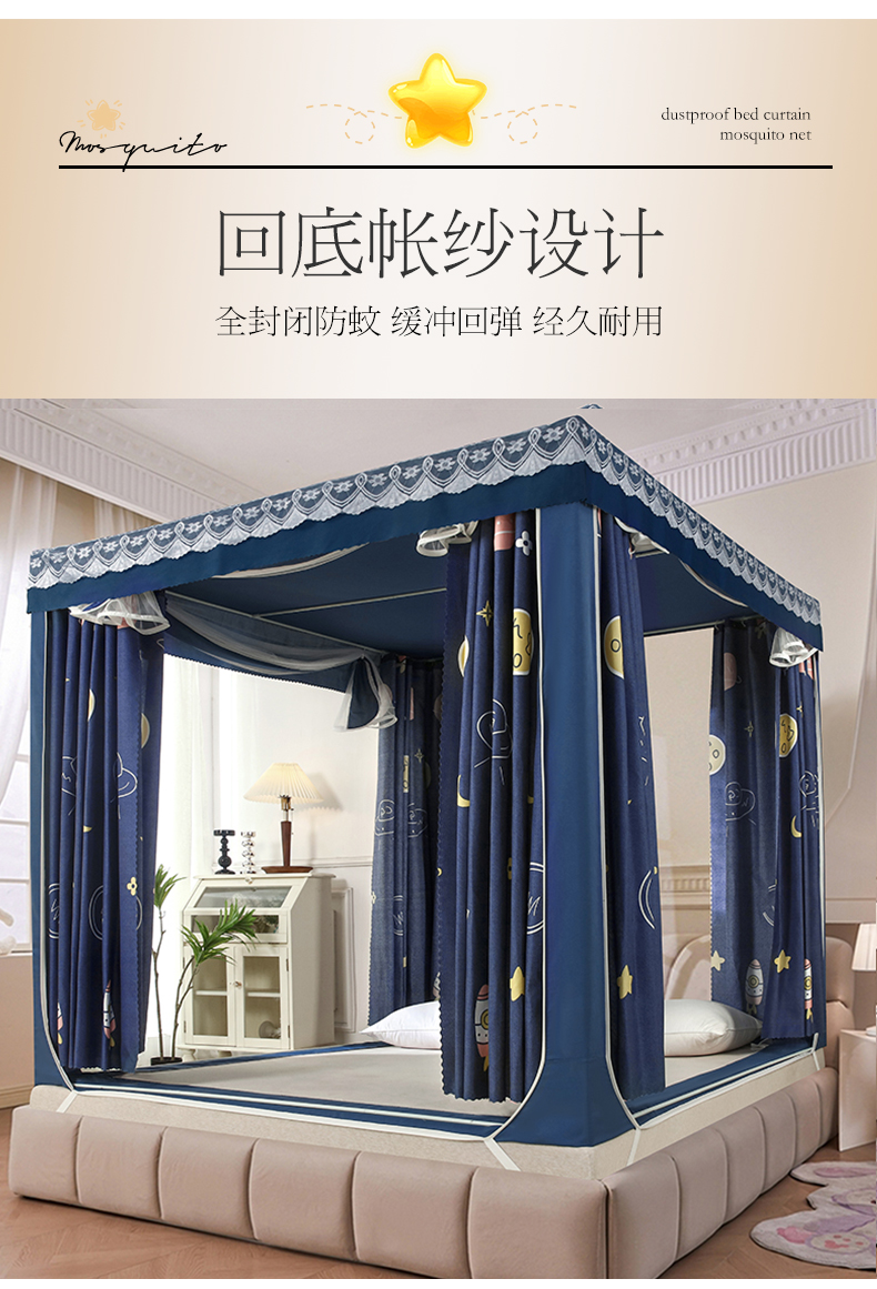 商品名称:显高蚊帐 2025新款U型坐床遮光防尘床帘式蚊帐 宇宙之星