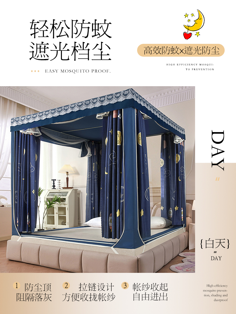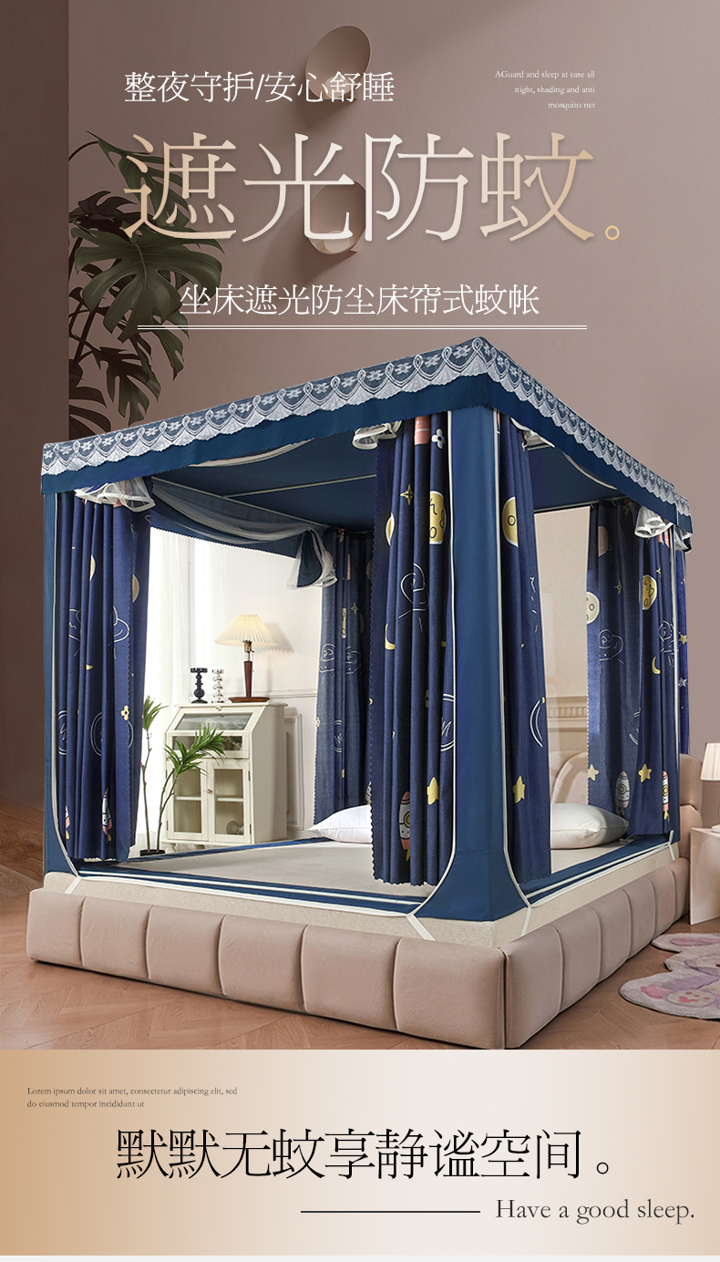 显高蚊帐 2025新款U型坐床遮光防尘床帘式蚊帐 宇宙之星