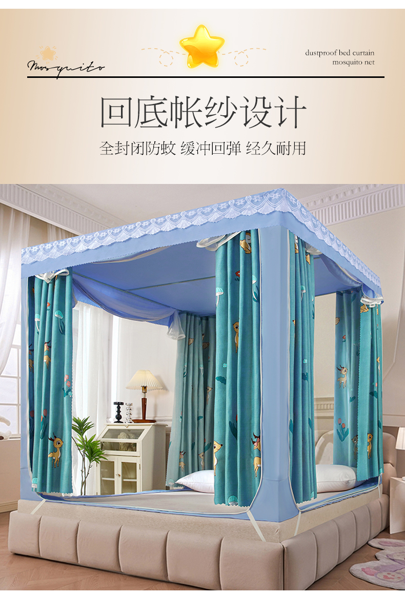 显高蚊帐2025新款坐床遮光防尘床帘式蚊帐-回底全低(全花型) 1.8*2.2,兔宝贝,北欧森林,春花集,蜜粉,星空,星愿,蓝花兔,爱心小兔
