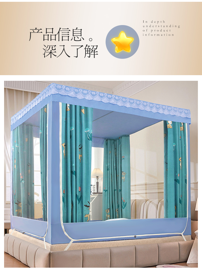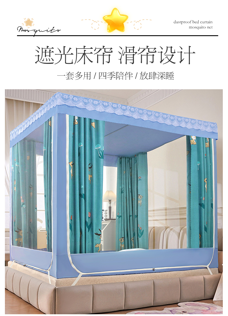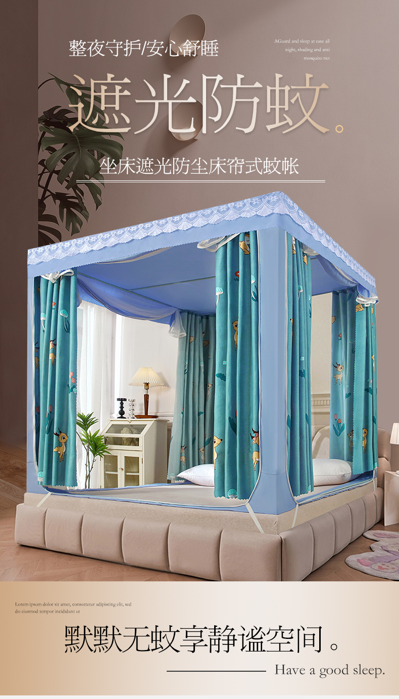 商品名称:显高蚊帐 2025新款U型坐床遮光防尘床帘式蚊帐 时尚蓝