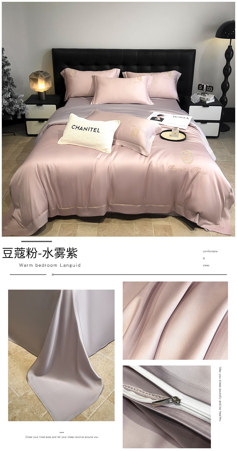 (总)床绮 2025新款水洗真丝双拼四件套系列,宾利蓝+冰川灰,冰川灰+烟灰,豆蔻粉+原野,风铃兰+山灰,猫眼绿+原野,抹茶绿+原野,奶茶色+中灰,水雾紫+豆蔻粉,雪芽 +风铃兰,雪芽+奶茶色,烟灰+冰川灰,原野+麦肤色