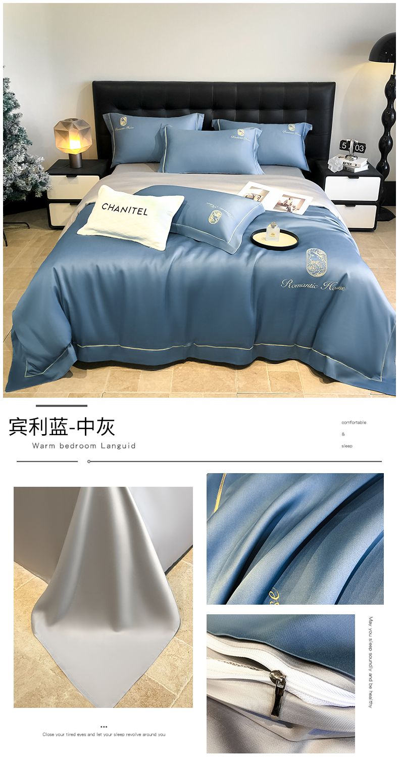 (总)床绮 2024新款轻奢40支纯棉13372四件套系列-若梦,宾利蓝,梵星蓝,风铃兰,海青,优雅粉,优雅粉+宾利蓝,云川绿,中灰