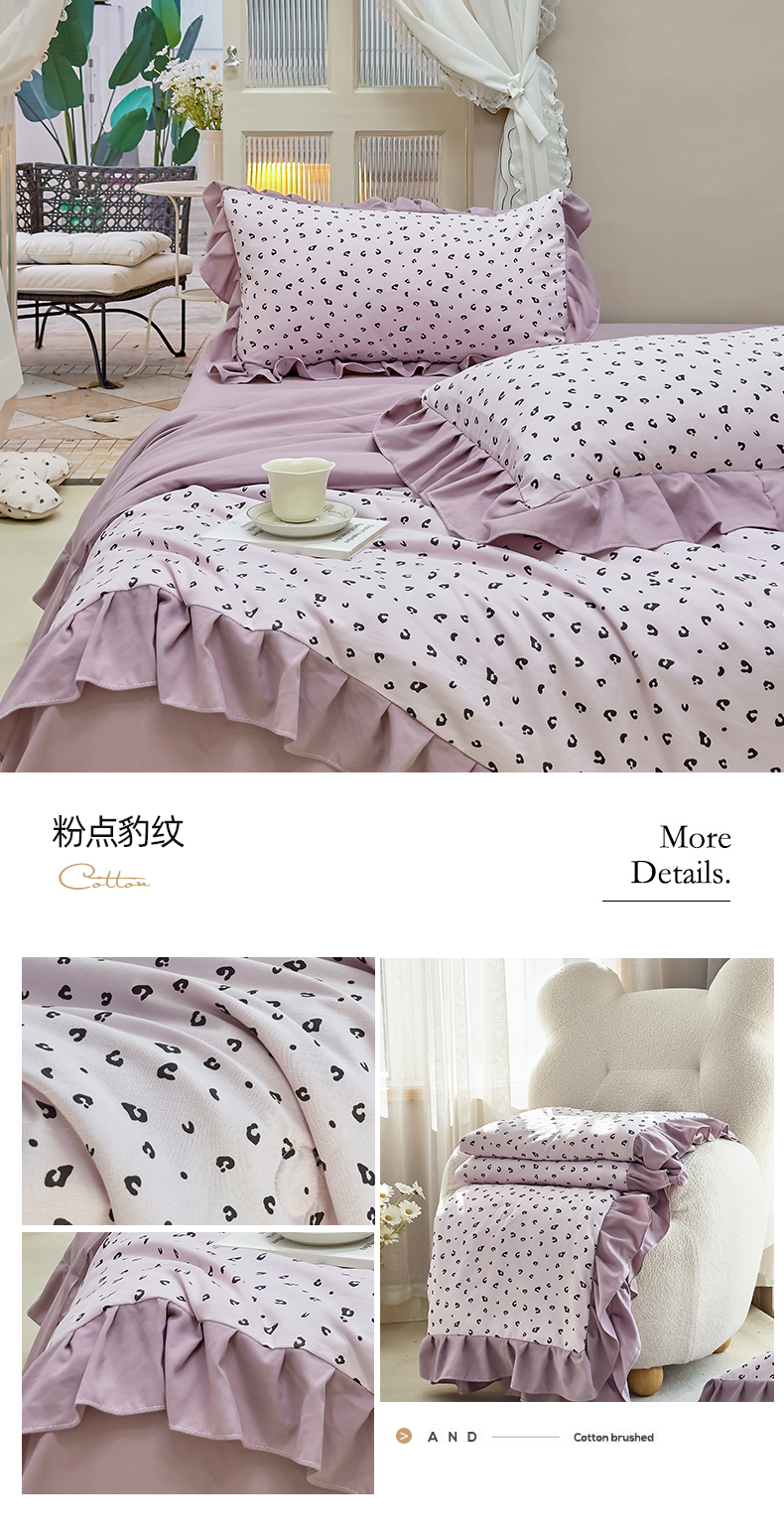商品名称:梦莱斯2025新款针织棉夏被四件套 粉点豹纹