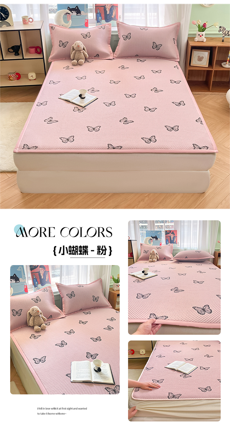 莱米家纺 2025新款冰感凉豆豆凉席床笠款 小蝴蝶—粉