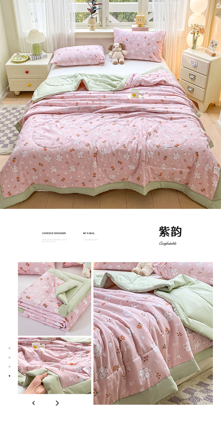 商品名称:穆琪 2025年新款小清新手包边夏凉被水洗棉印花夏被 紫韵