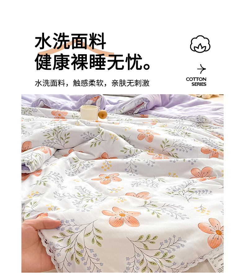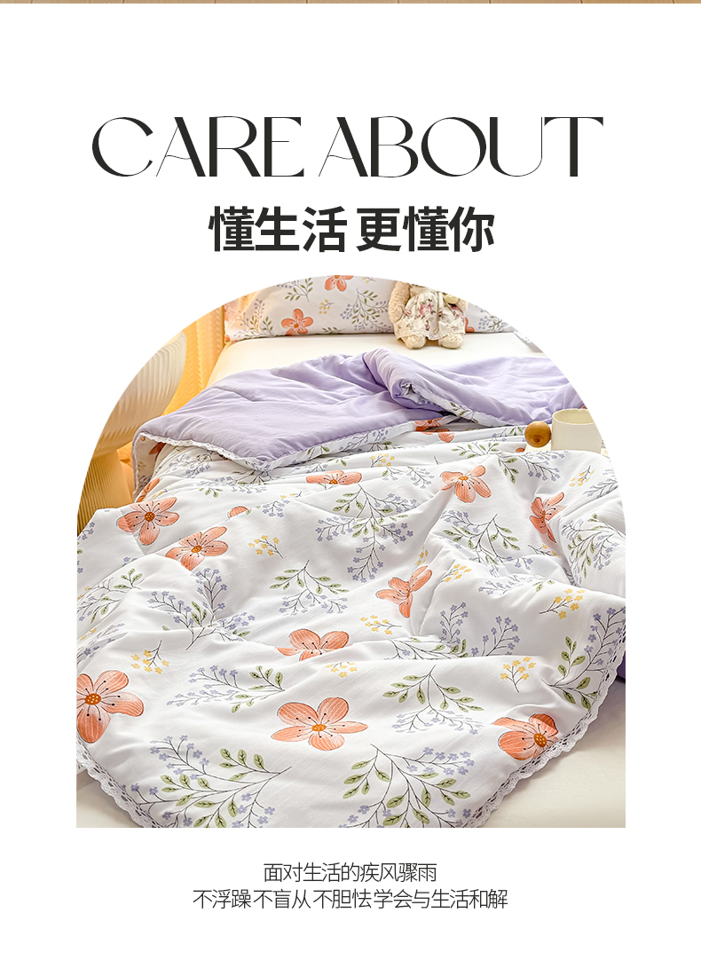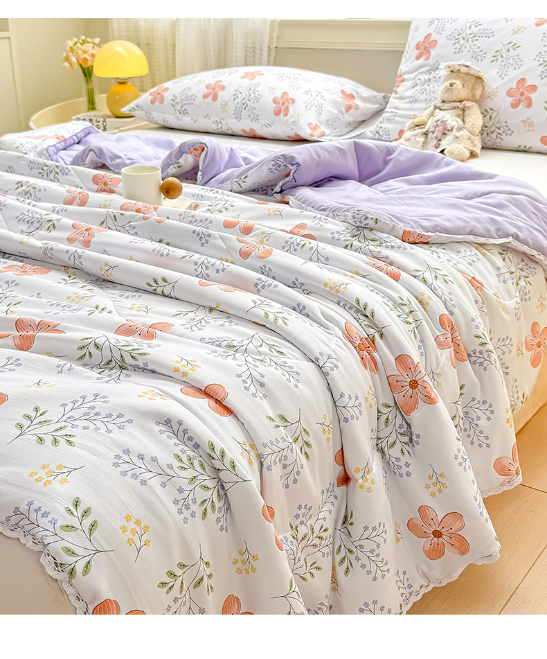 商品名称:穆琪 2025新款小花边印花夏被小清新夏凉被 花颜-小花边
