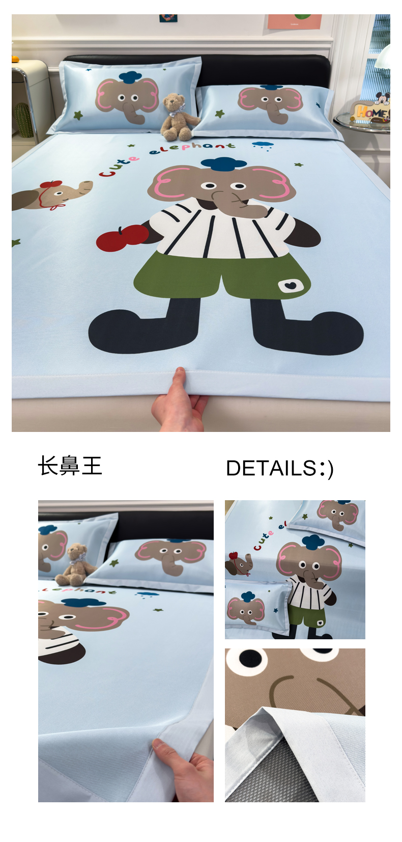 商品名称:丝羽坊 2025新款大版印花冰丝凉席冰丝席碳光冰丝凉席-平铺款 长鼻王