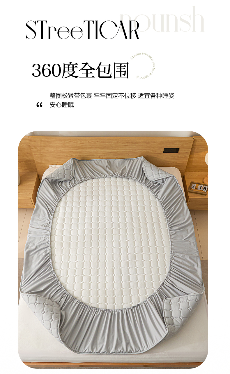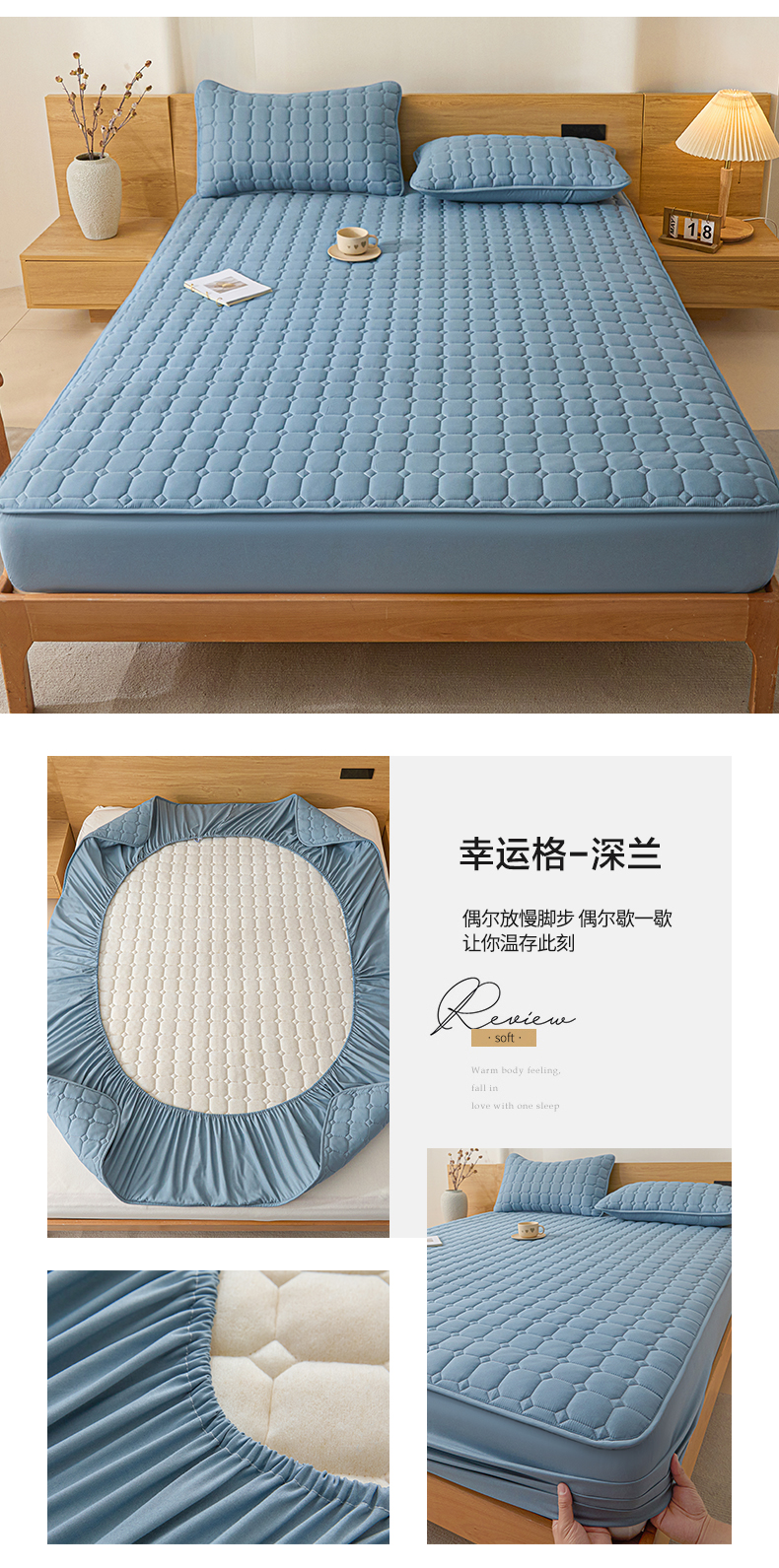 • 91家纺网 家纺一手货源 找家纺 居眠 2025新款A类夹棉纯色床笠幸运格系列 幸运格-灰色