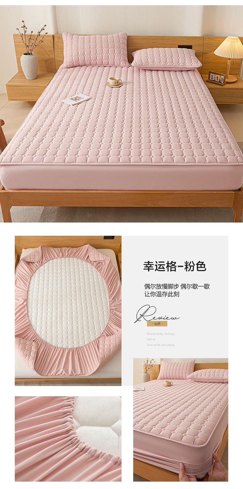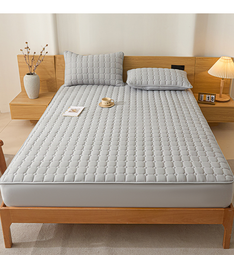 居眠 2025新款A类夹棉纯色床笠幸运格系列 幸运格-灰色