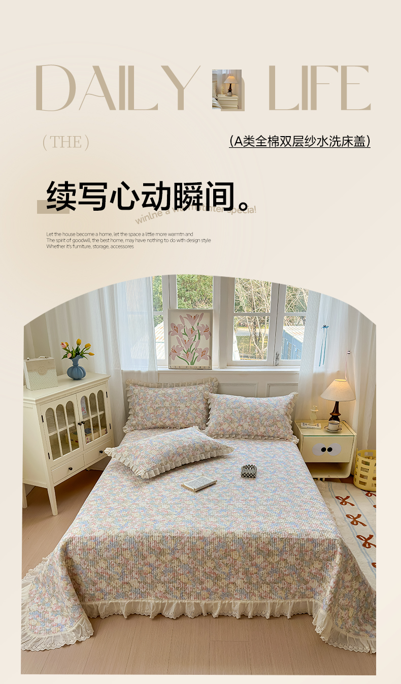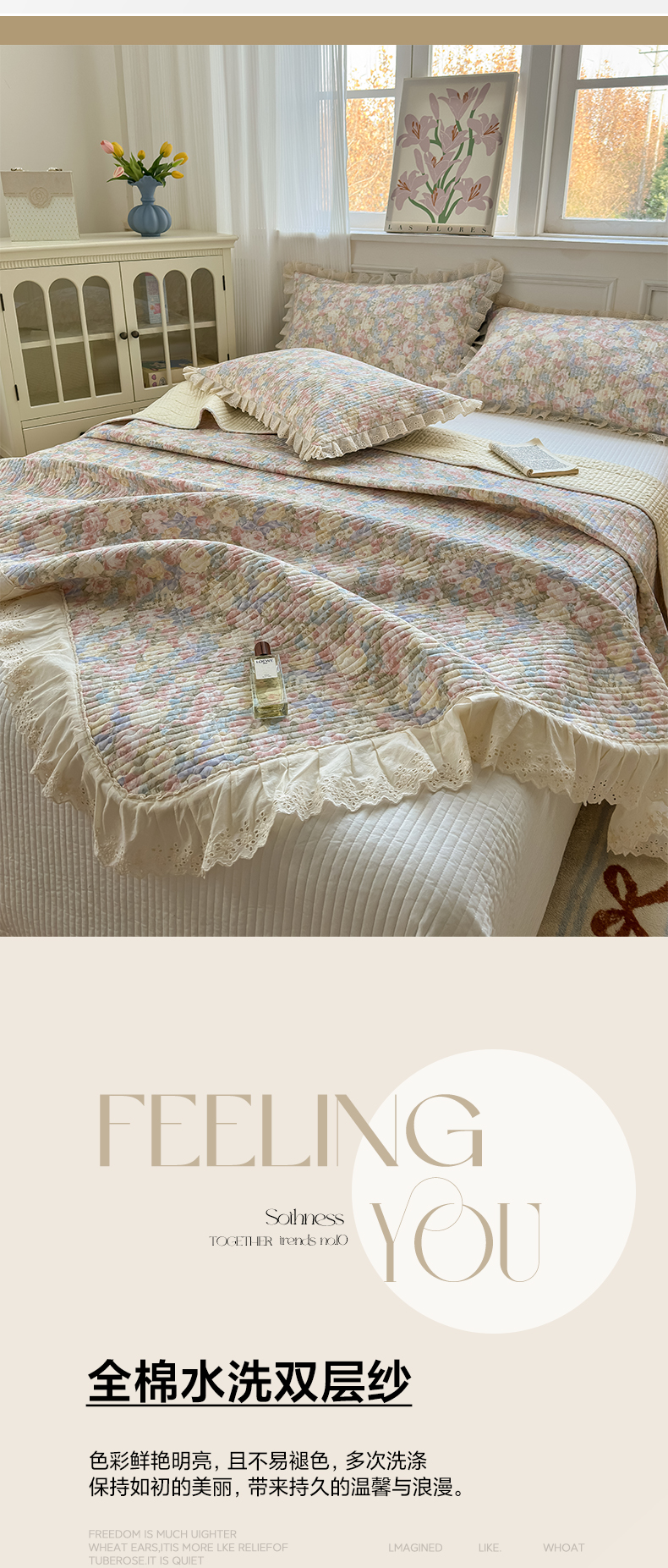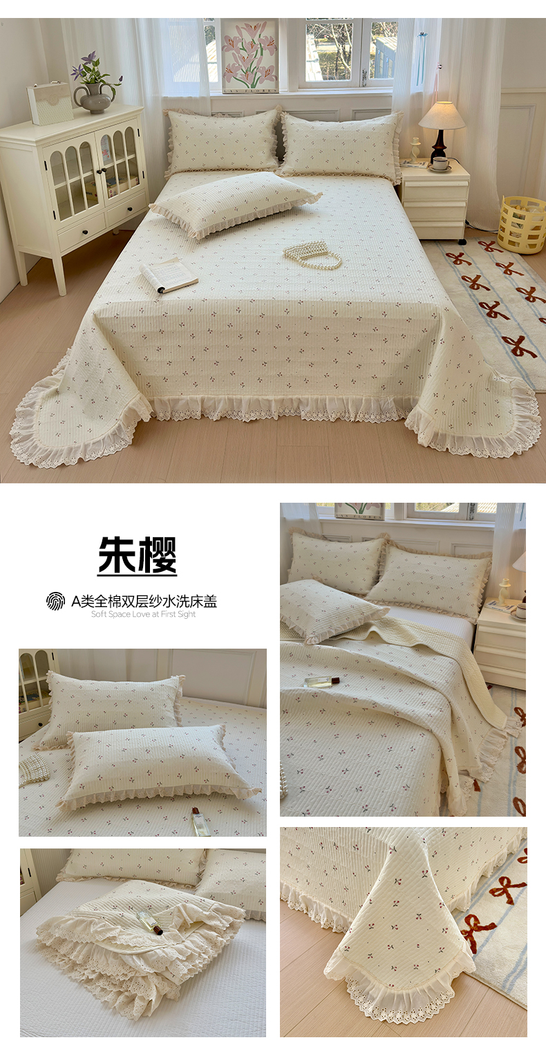 (总)美优兰 2025全棉法式花边双层纱水洗棉花床盖三件套(提供买家秀),组合图仅供参考,半亩花田,波点绿,春意盎然粉,春意盎然绿,玛德琳紫,南风,如画,写意,朱樱