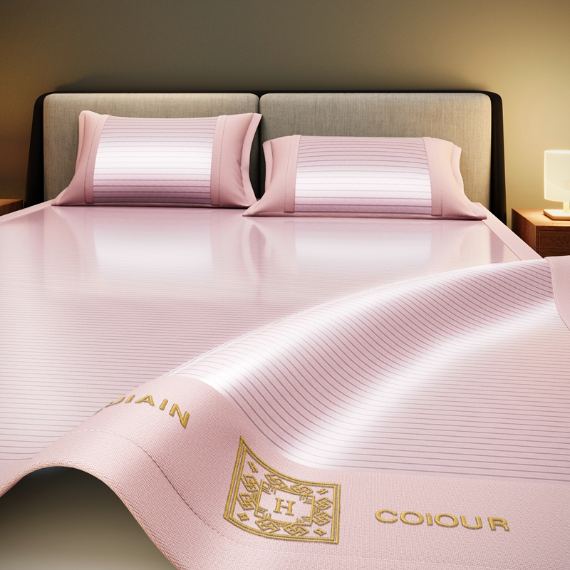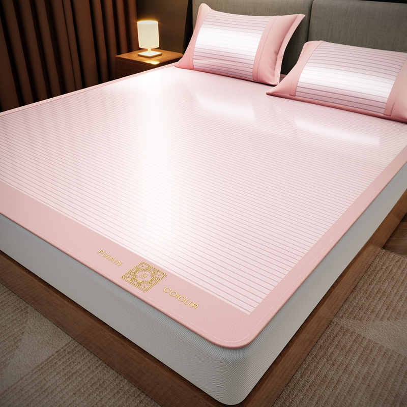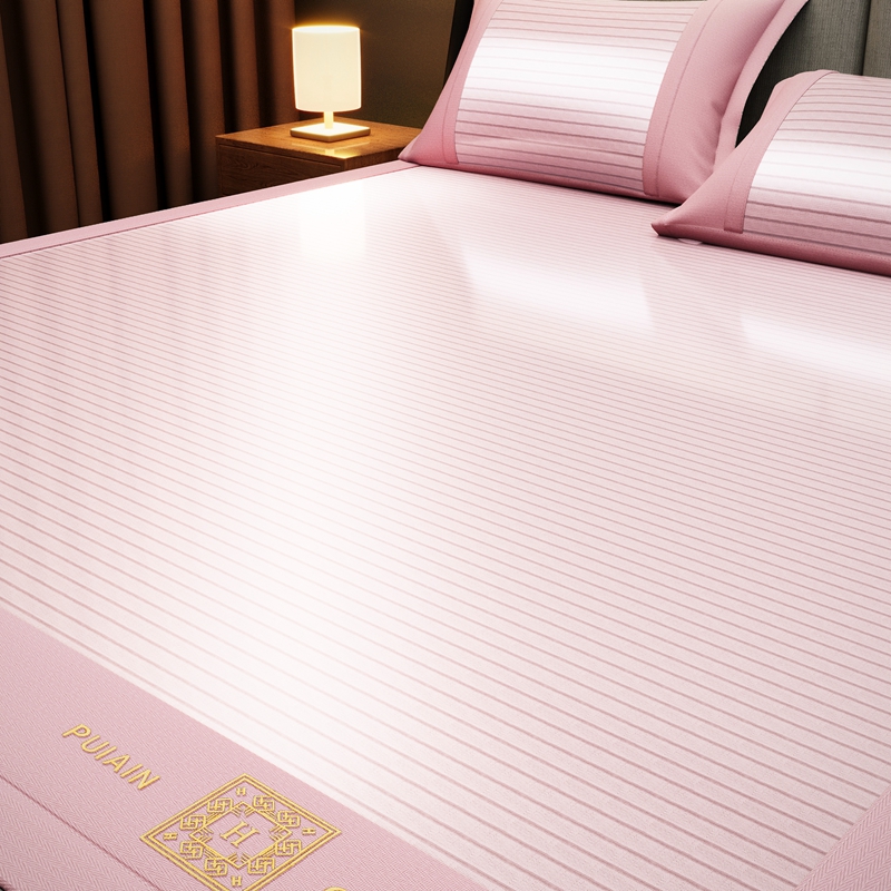 • 91家纺网 家纺一手货源 找家纺 卡初家居(原微来) 2025新款凉感冰丝藤席凉席席子-英文条纹席 英文条纹席-千禧粉