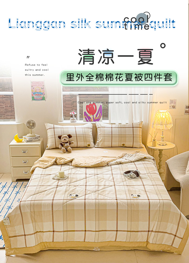 • 91家纺网 家纺一手货源 找家纺 初相识被业 2025新款里外全棉夏被棉花夏被四件套印花夏凉被空调被 时光