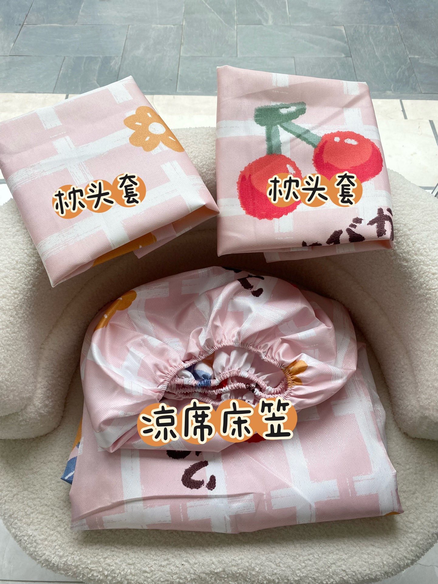 商品名称:豪美鑫 2025新款提花冰丝席床笠款 樱桃格格