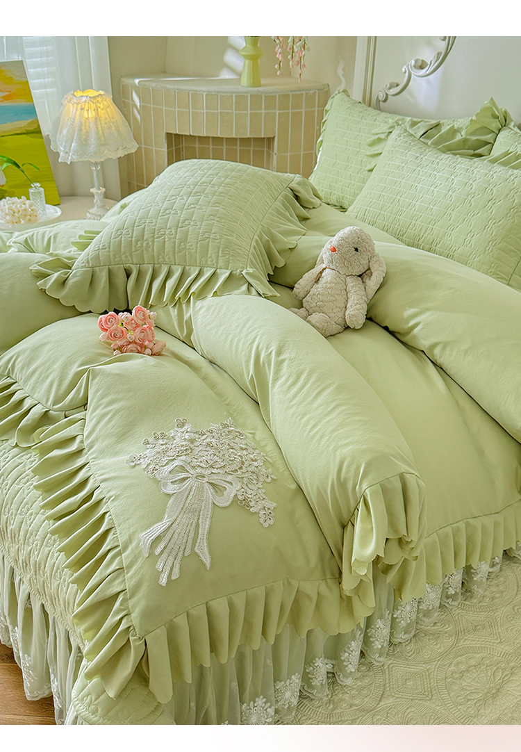 (总)漫布云 2025新款230g高克重韩版立体盘花牛奶蚕丝绒绣花四件套床裙款被套-洛丽塔系列,洛丽塔-嫩黄 ,洛丽塔-香芋紫,洛丽塔-珍珠粉, 洛丽塔-婴儿蓝