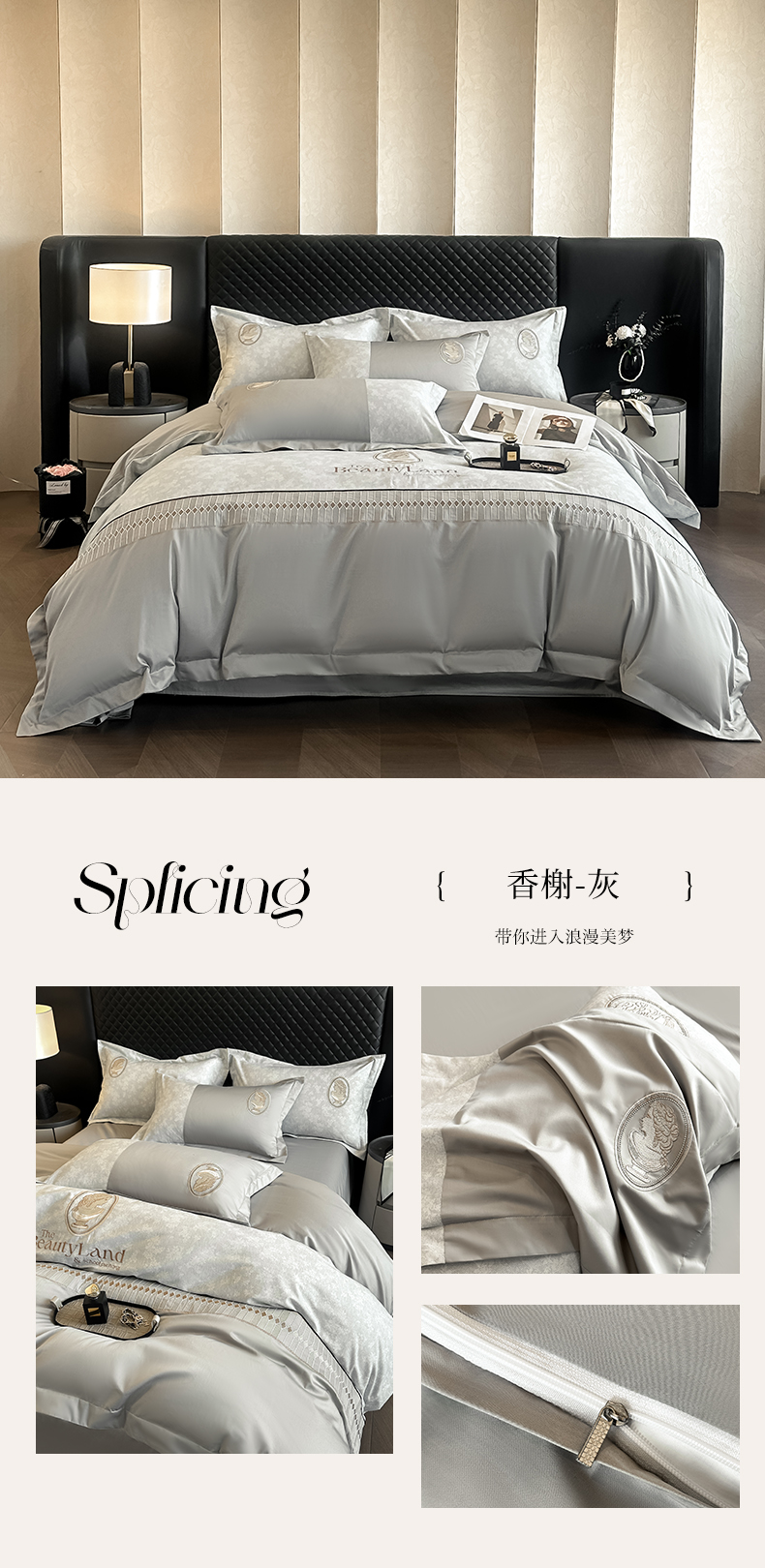 (总)苏美 2025新款夏季贡缎提花冰丝高端轻奢系列四件套,百丽-灰,百丽-香槟,缤纷-灰,缤纷-香槟,花影-粉,花影-蓝