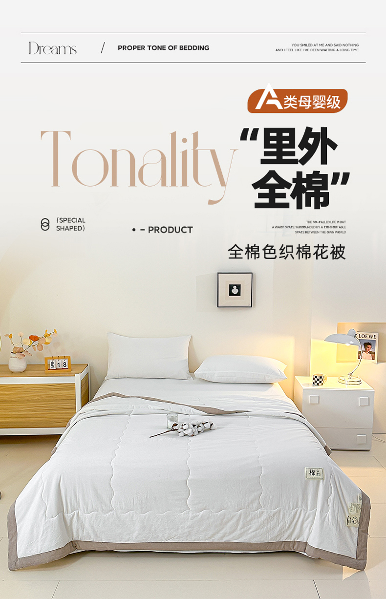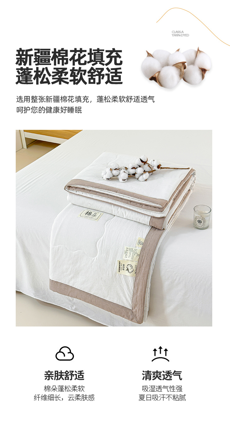 (总)圣尔雅 2025新款里外全棉色织夏被新疆棉花被纯棉被子空调被夏凉被,黛蓝,粉玉,卡其,墨绿,奶白,星灰