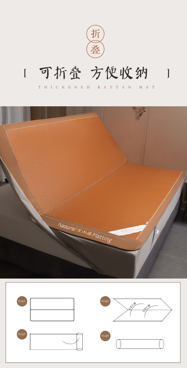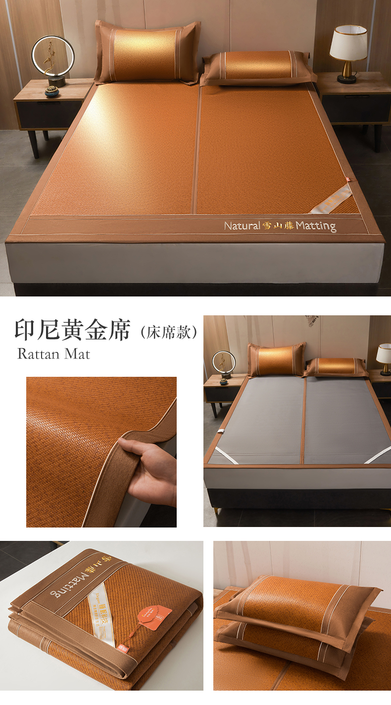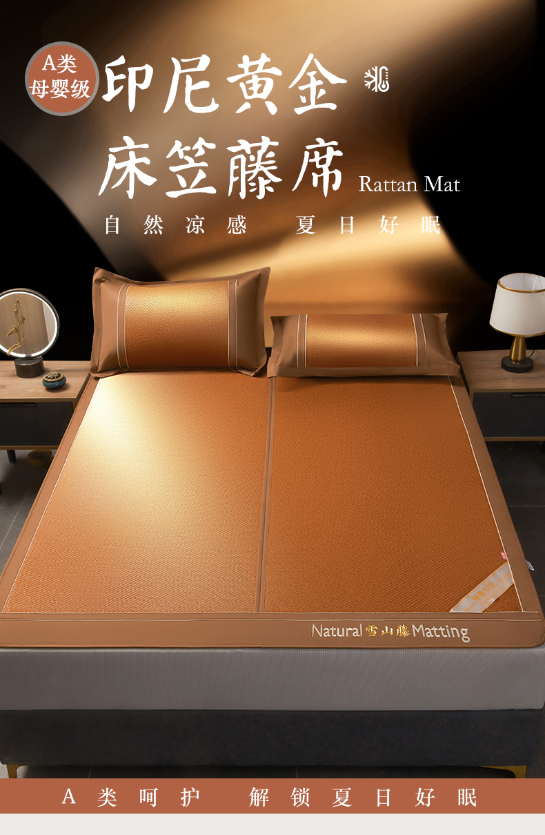 商品名称:卡罗兰 2025新款藤席凉席三件套床单床笠黄金藤系列 黄金藤经典咖-床席