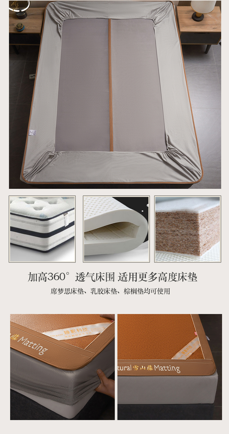 (总)卡罗兰 2025新款PE超冷感霸王藤刺绣床笠款凉席席子,古藤咖-床笠款,烟灰色-床笠款