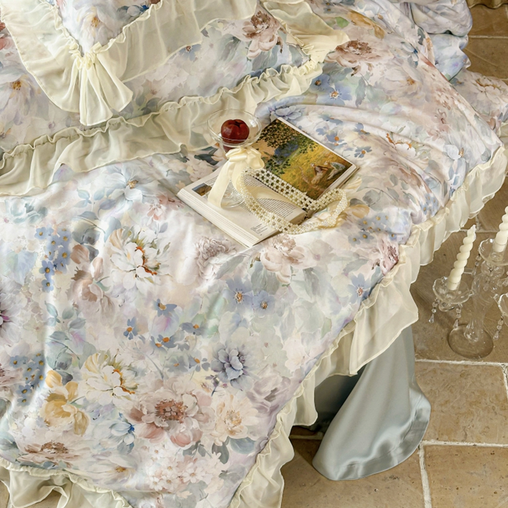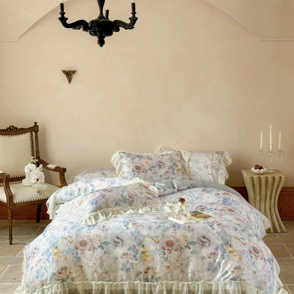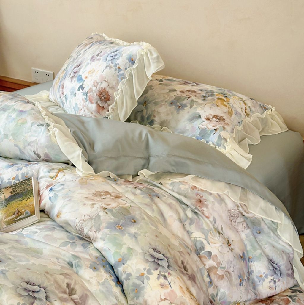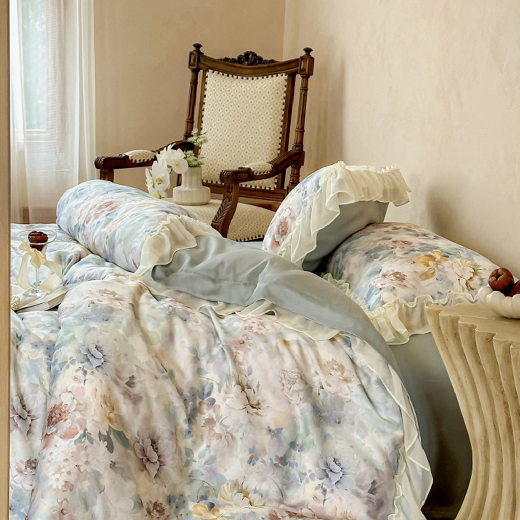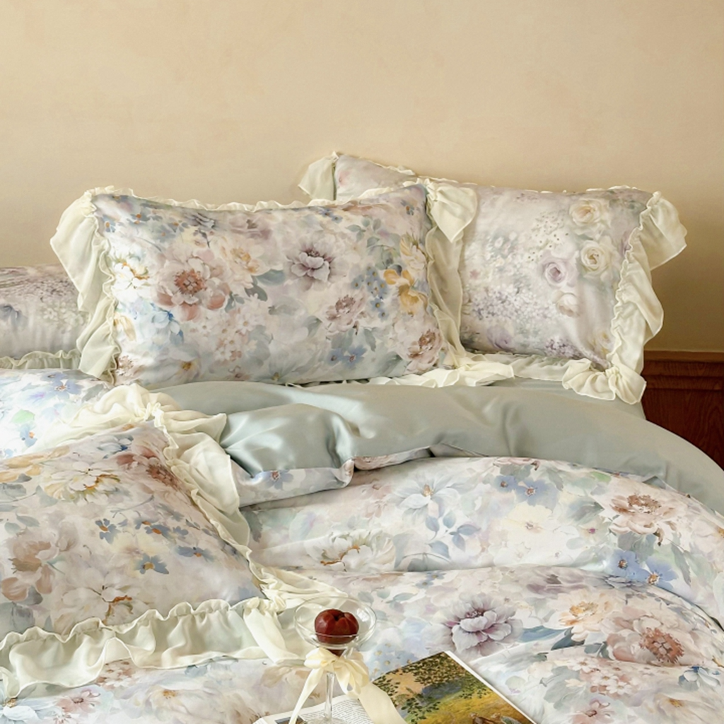 禾时 2025新款60支兰精天丝数码印花云纱四件套 觅棠
