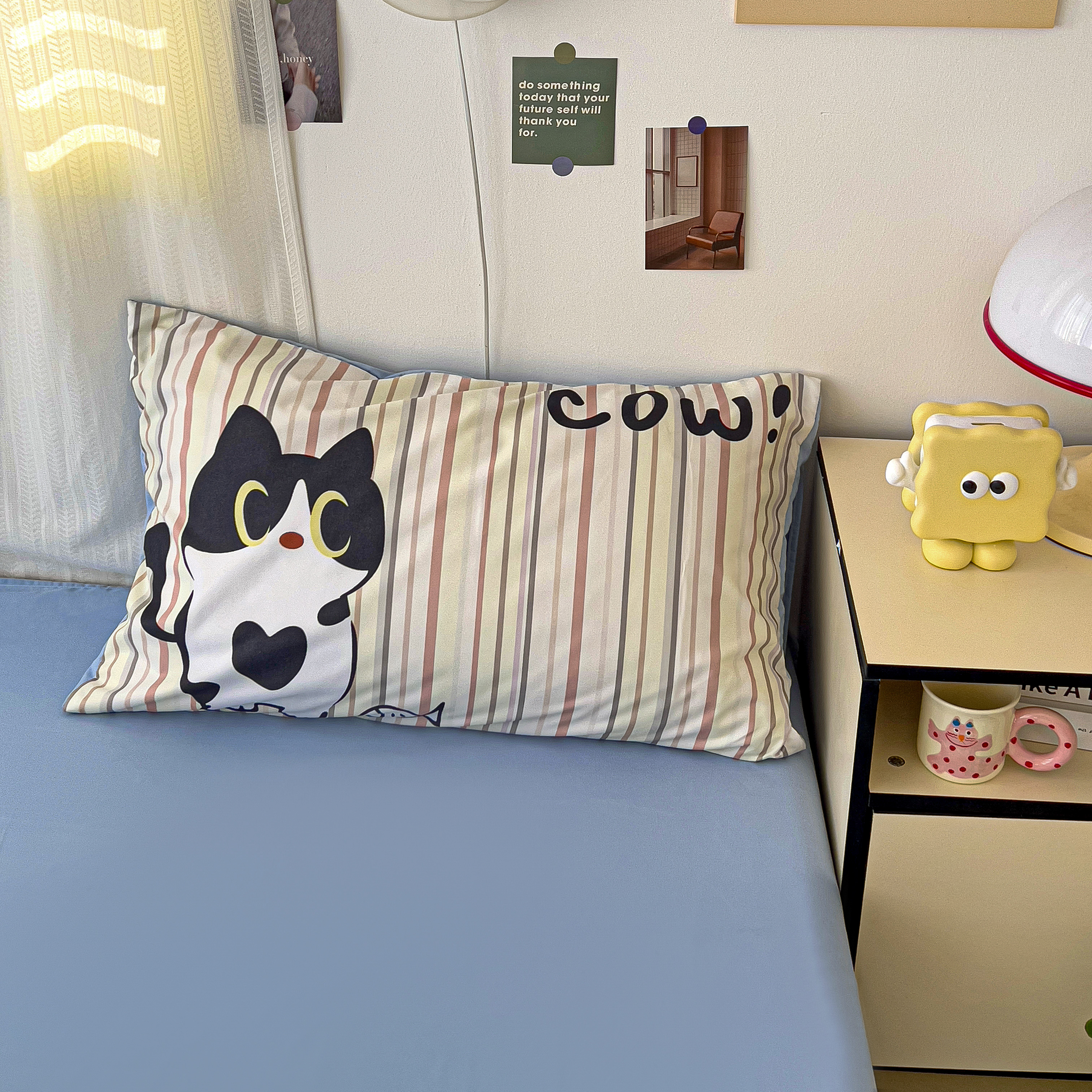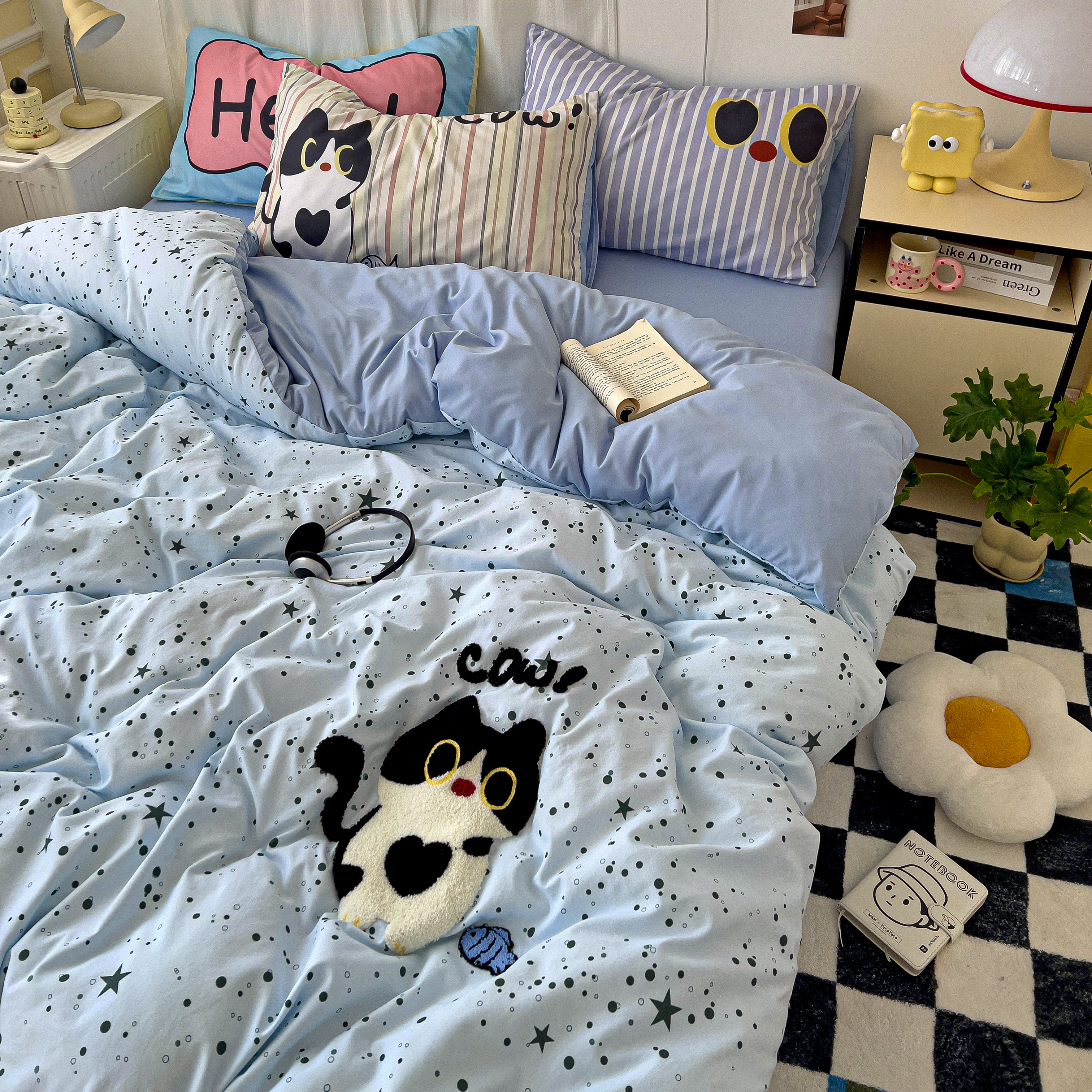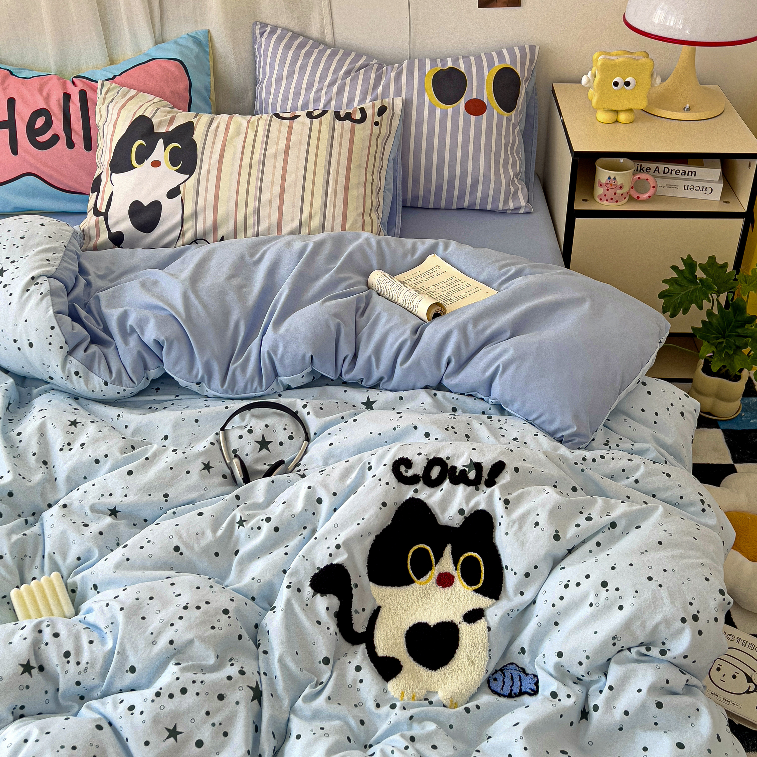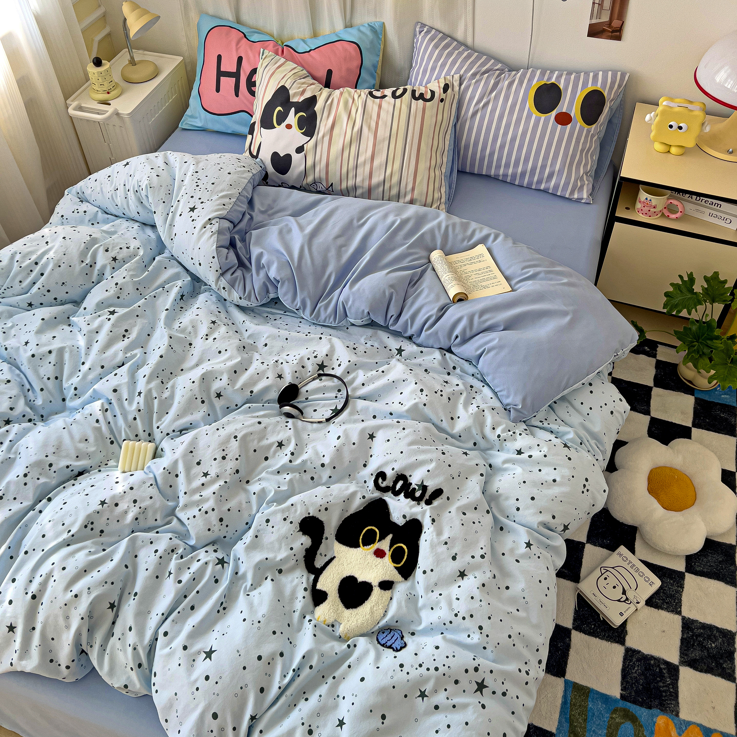 一霖家纺 2025新款高克重云朵棉数码印花+毛巾绣四件套 黑色小猫