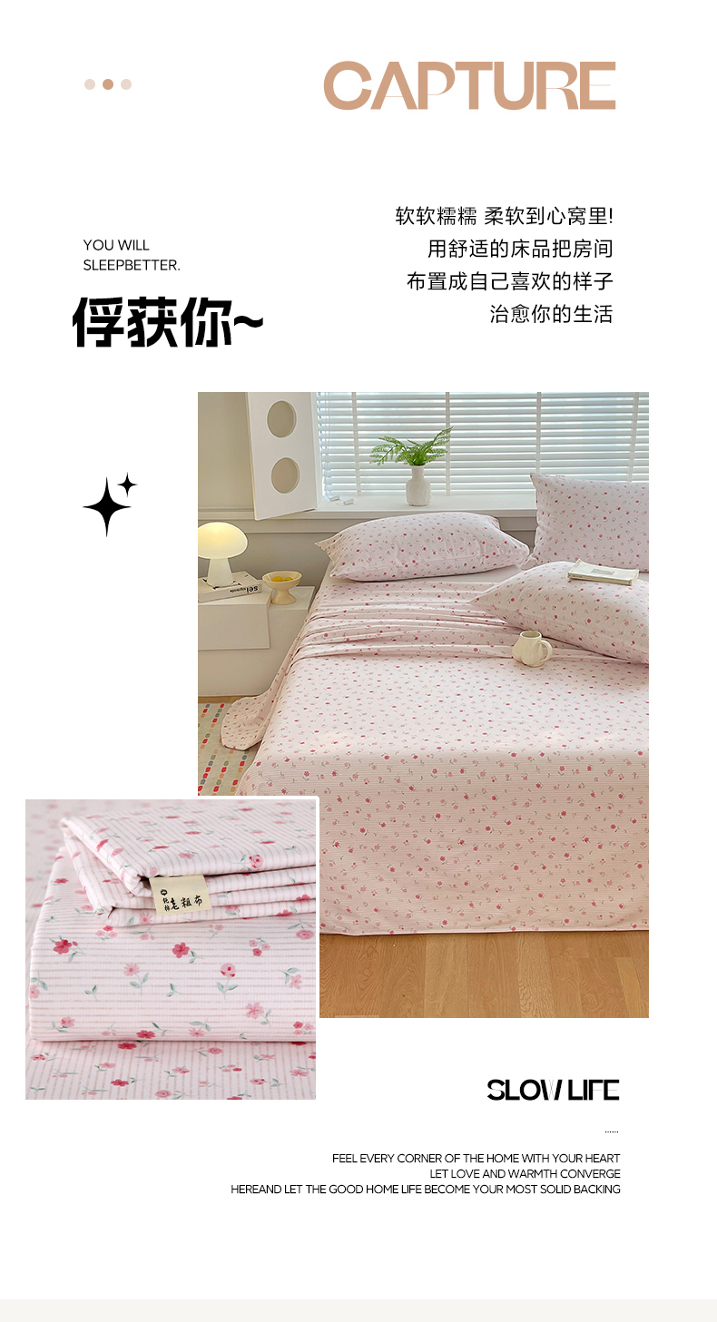 • 91家纺网 家纺一手货源 找家纺 爱彼2025新款华夫格全棉纯棉老粗布床单凉席-系列三 粉暖暖