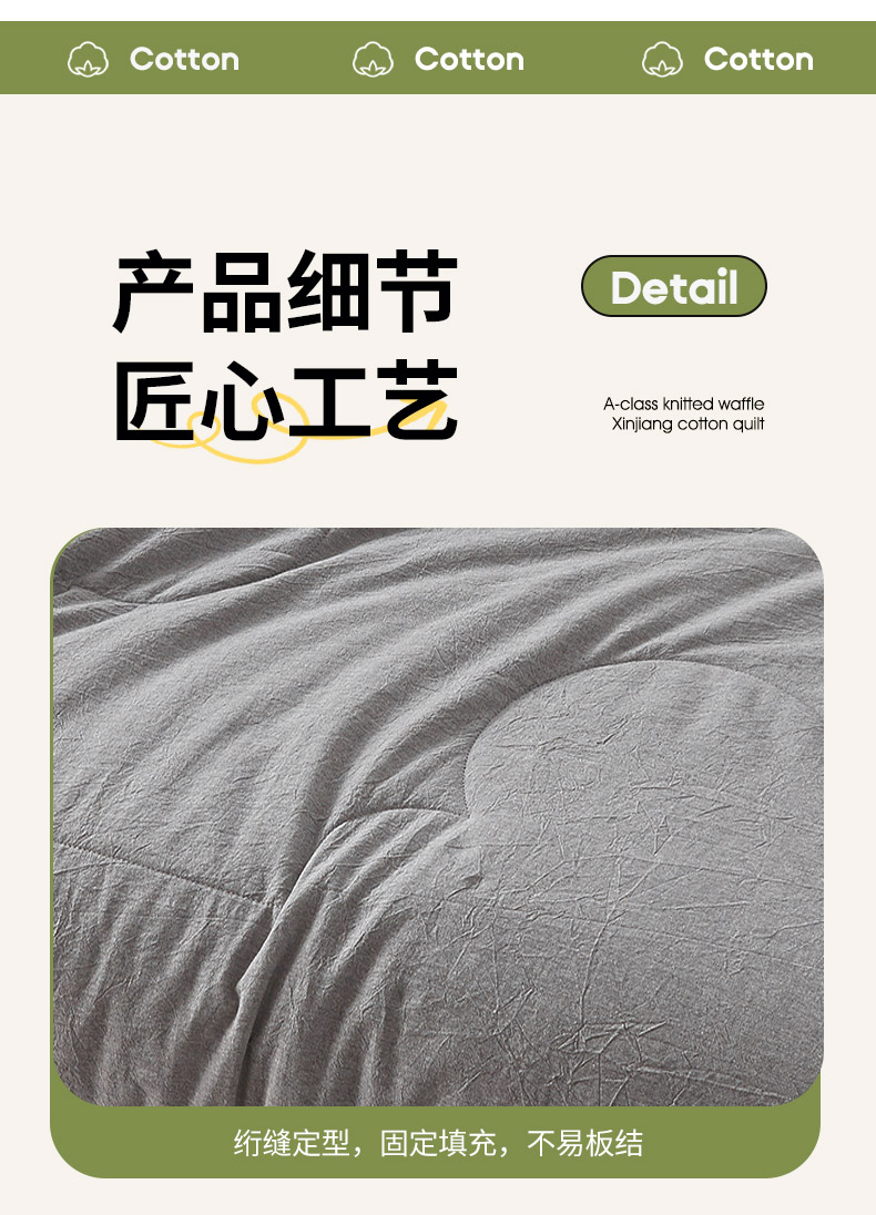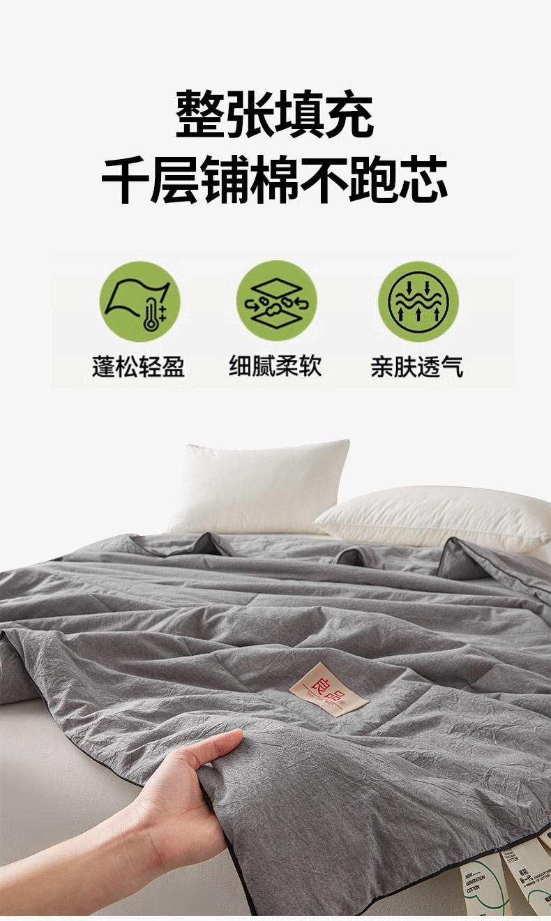 (总)熙宴家纺 2025新款水洗棉嵌绳款100%新疆棉花被,豆绿,粉玉,石灰,雾蓝