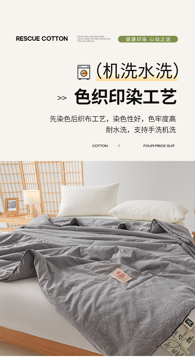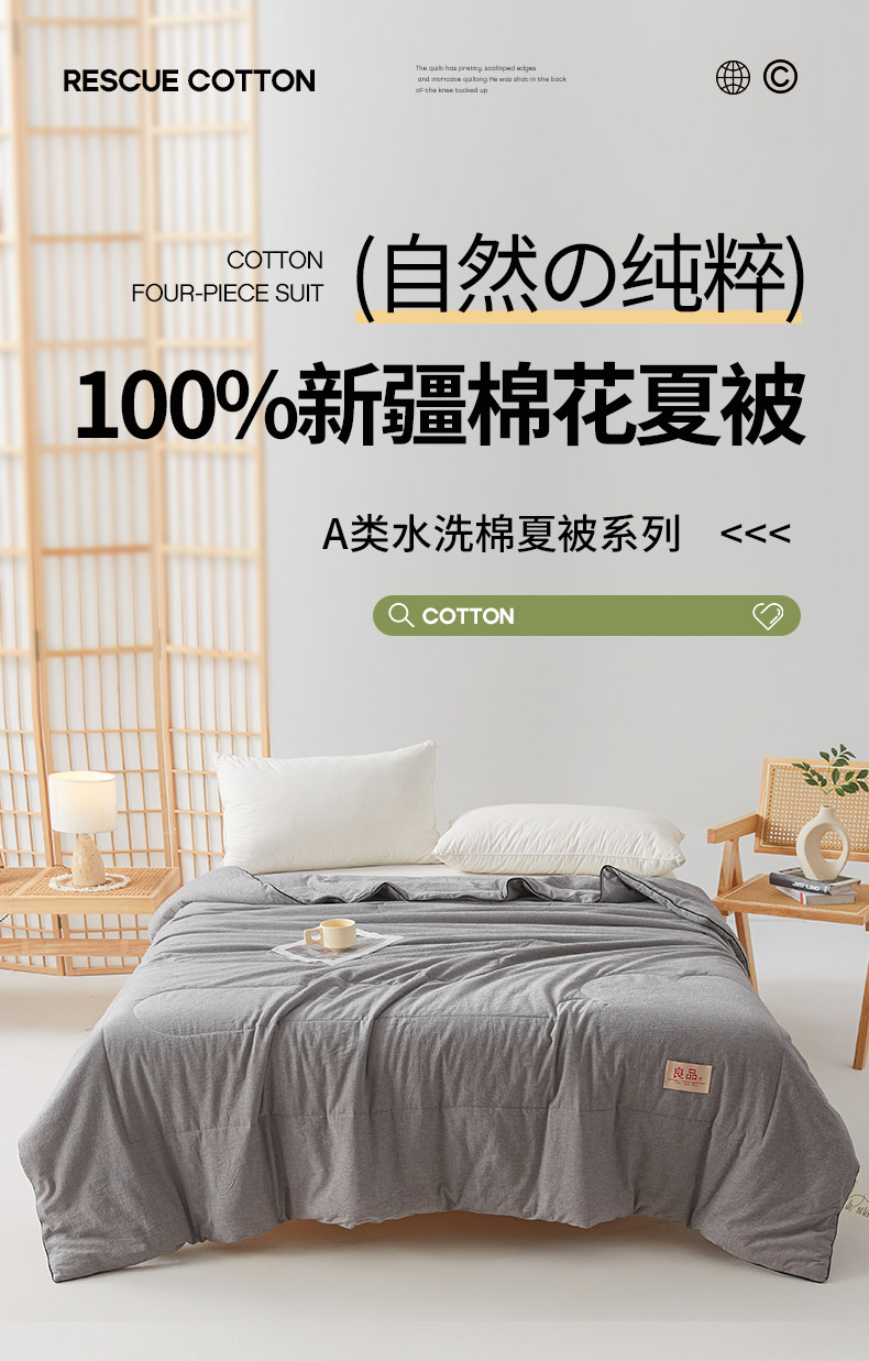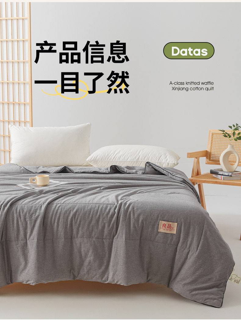 商品名称:熙宴家纺 2025新款纯色水洗棉新疆棉花夏被 石灰