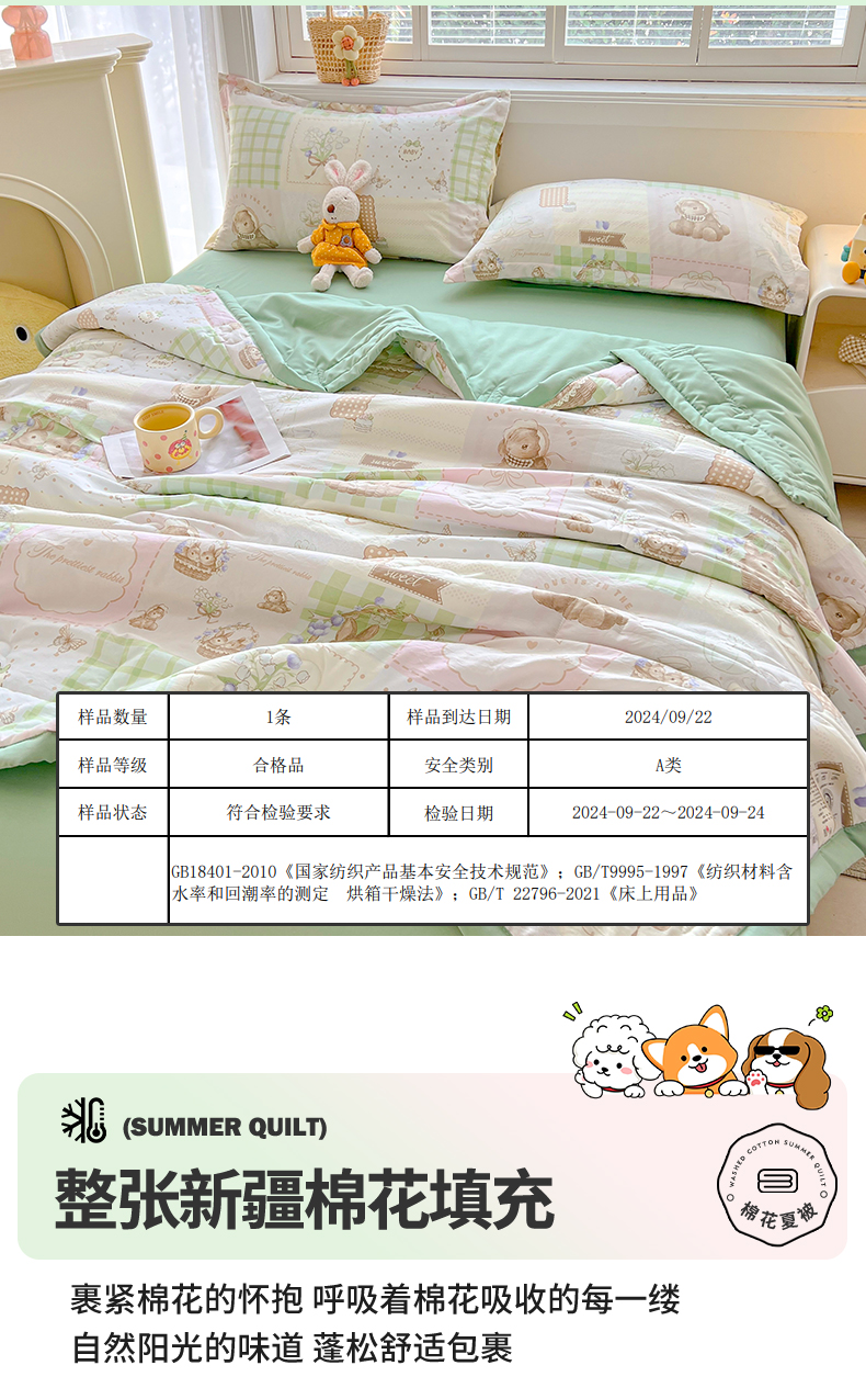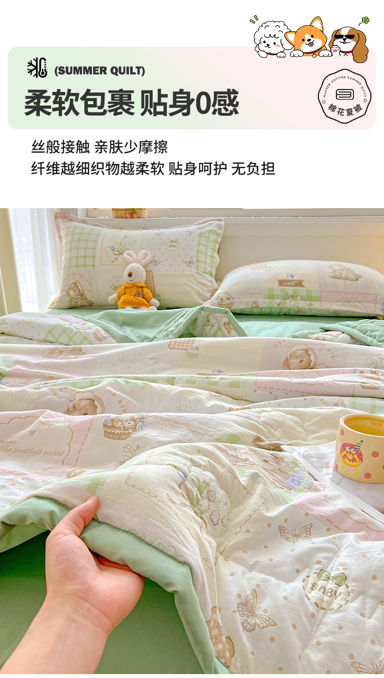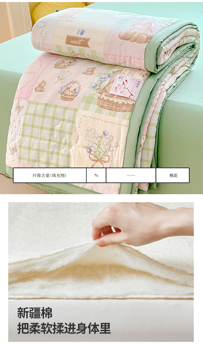 商品名称:西域种棉人·千百笠 2025新款A类新疆棉花夏凉被加宽包边水洗棉卡通印花吸湿透气棉花夏被空调被 凌香 宠物格